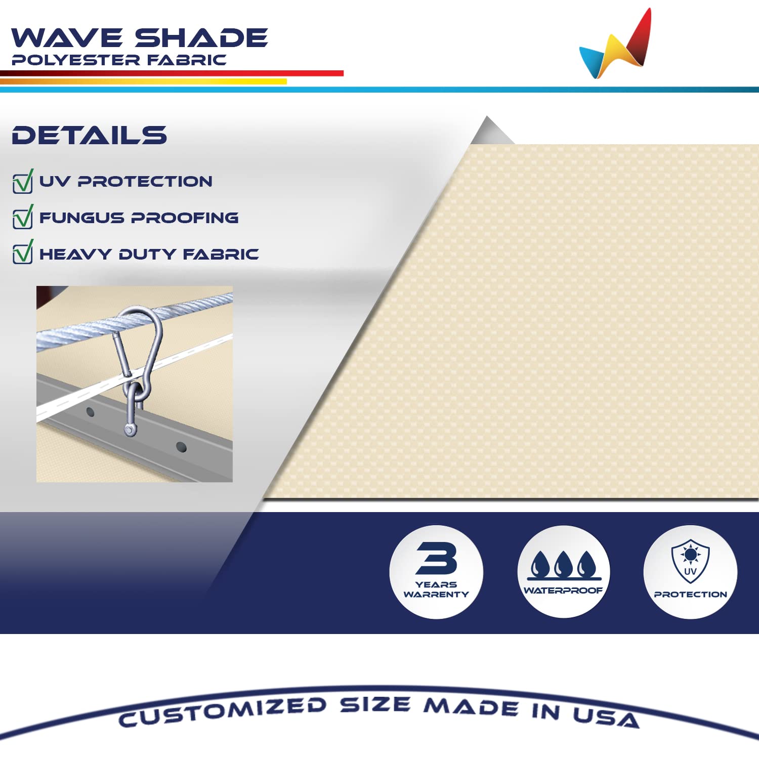 Windscreen4less 4' x 16' Waterproof Retractable Sun Shade Canopy Cover Sliding Wave Shade Sail for Pergola Patio Deck Yard Gazebo Outdoor (Beige)