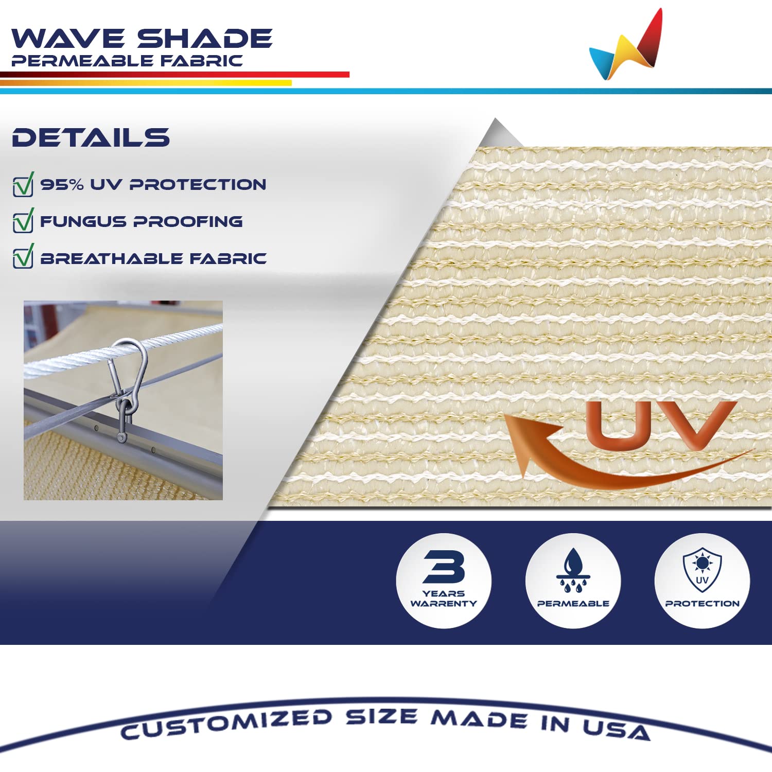 - U-SHAPE COVER - This retractable shade cover can be pull back easily and you can close shade cover when it not in use. Each panel rod has three pre-drilled hole on each end for you to choose from to attach the shackle and snap hook which needs to hang onto the wire cable on each side.