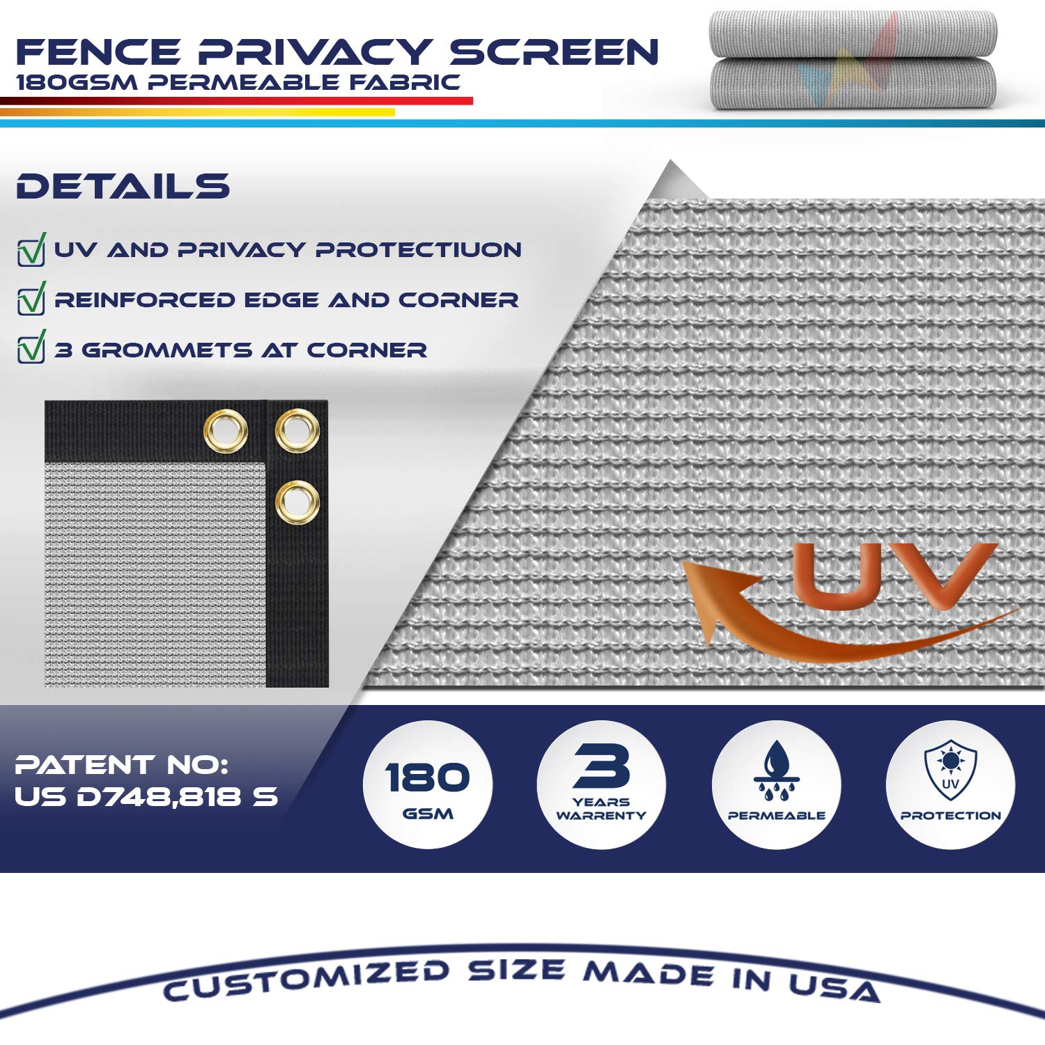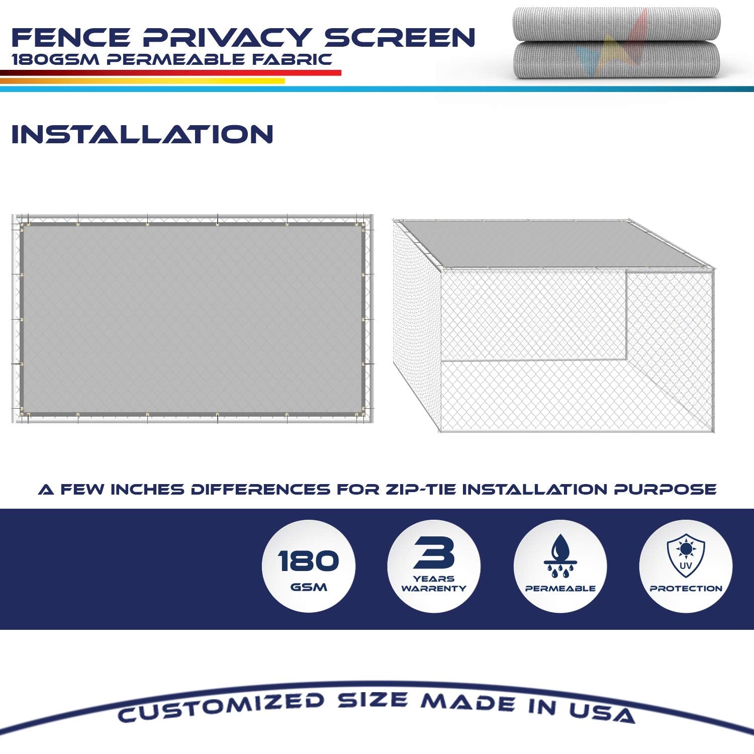 - FEATURES: High-Quality Fence Screens is made from made of 180 GSM 100% virgin (Non-recycled) HDPE material, UV stabilized to protect against the harmful rays of the sun, don't catch water, reducing temperatures underneath up to 25 degrees.