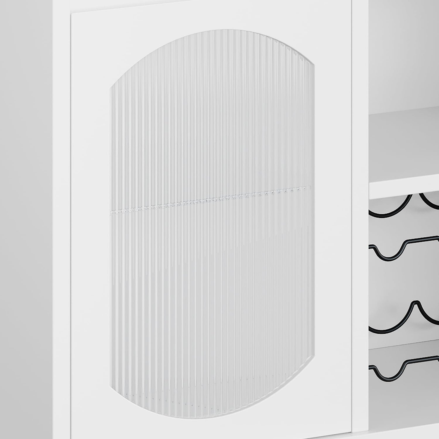 - VERSATILE STORAGE CABINET - The glass bar cabinet is the perfect combination of display and storage. This versatile piece can function as a practical coffee bar cabinet, a kitchen sideboard, or a wine cabinet. It includes two wine racks and glass storage to hold 8 bottles of wine and 8 glasses, meeting your daily needs.
