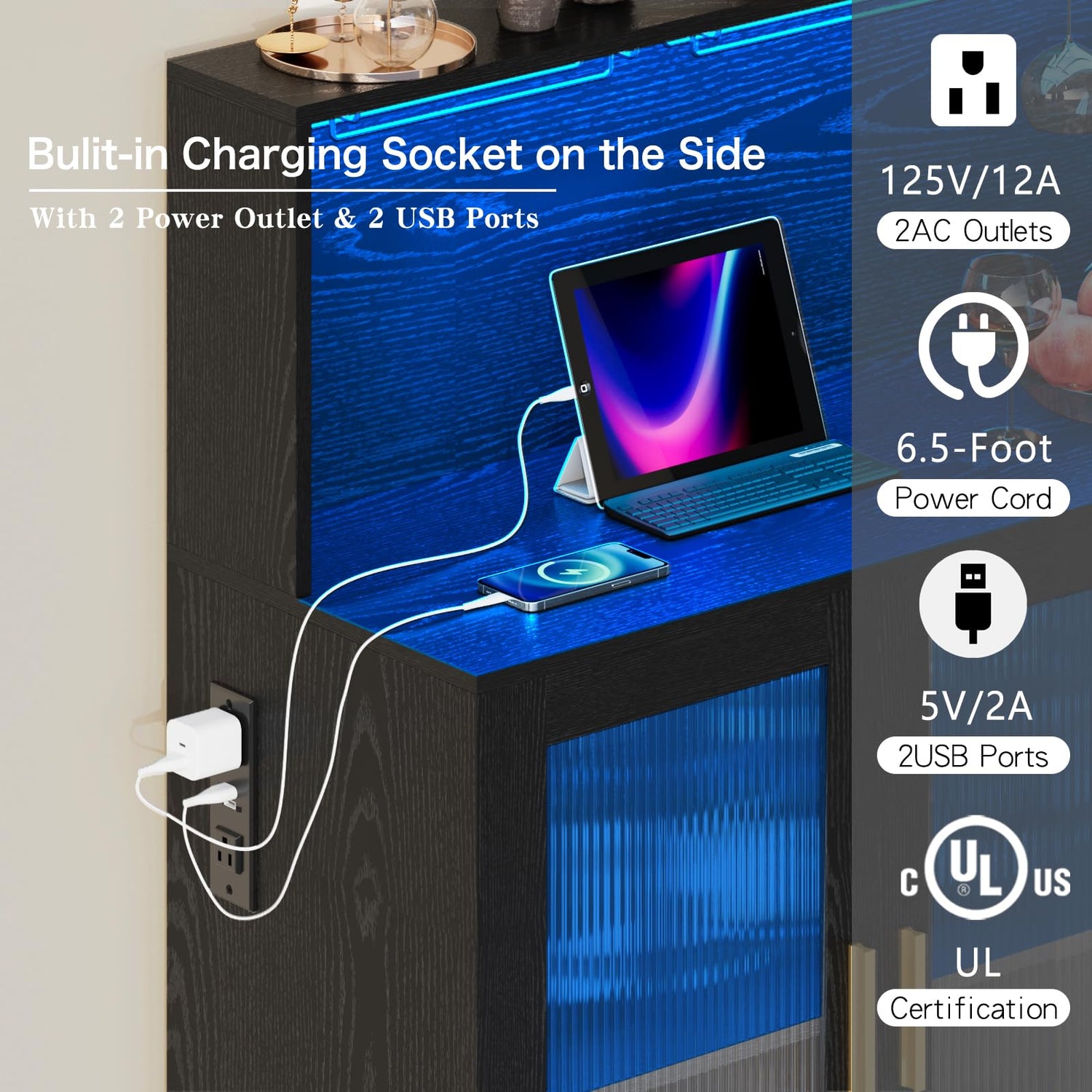 - 【Built-in Charging Socket】The bar cabinets for home has built-in 2 USB ports and 2 AC outlets on the side, making it easy to power kitchen appliances like microwaves or coffee makers, all while keeping your cell phone charged at your side. Socket is designed on the side, will not be affected by water stains, making it safer.