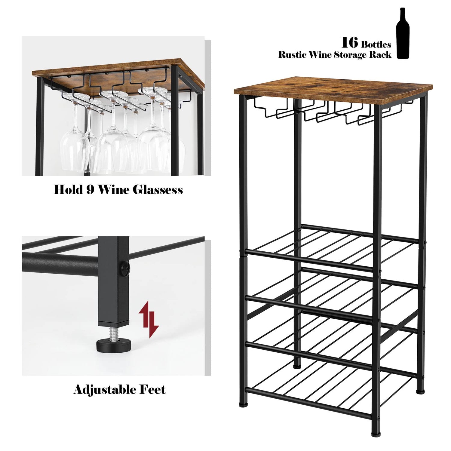 - 🏡 【Multifunctional Wine Rack Table】This wine cabinet is equipped with a storage shelf, 9 glass holders, and 4 tier wine rack for 16 wines, which can meet the needs of your home wine bottle storage. The home wine cabinet is not only suitable for storing wine bottles, drinks, wine glasses, fruit plates, or ice buckets, but it can also display decorations, books, and other accessories.