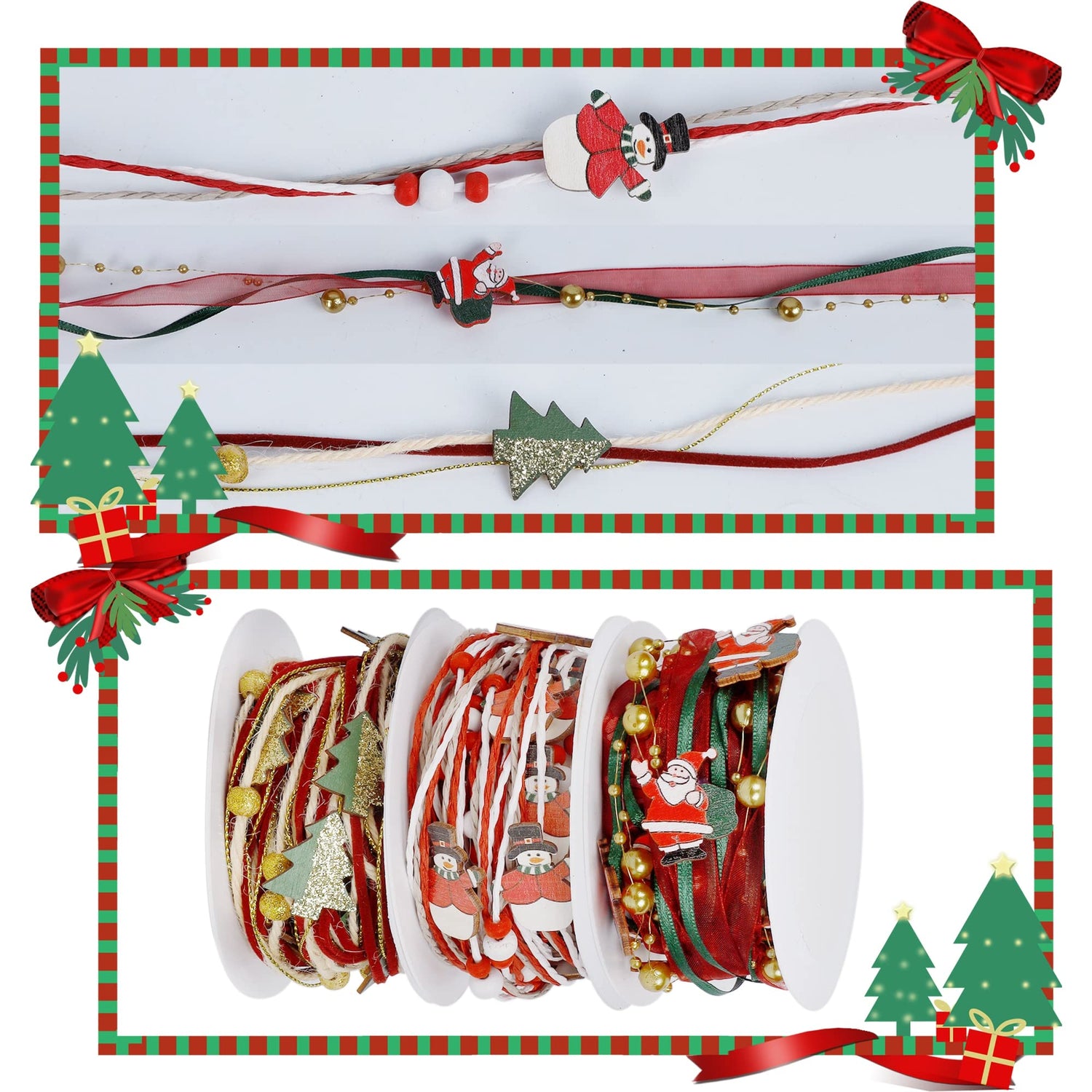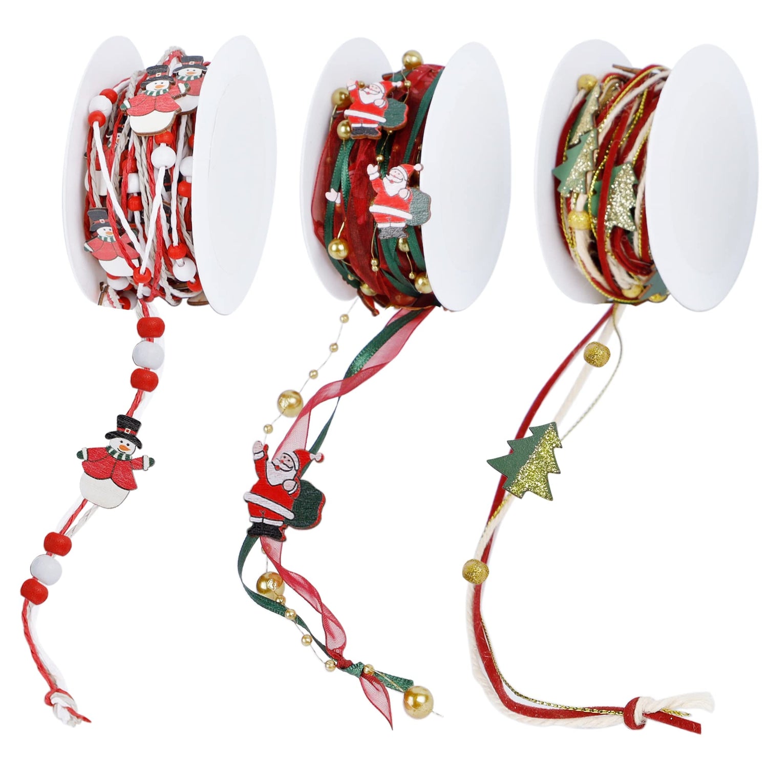 winemana 3 Pack 16.4 Ft Christmas Beads Ribbon, Christmas Tree Trim Rope with Santa Claus Snowman, Xmas Decorations for Garland, Wreath, Gift Wrapping, DIY Crafts Ornaments, Wedding Party Decor