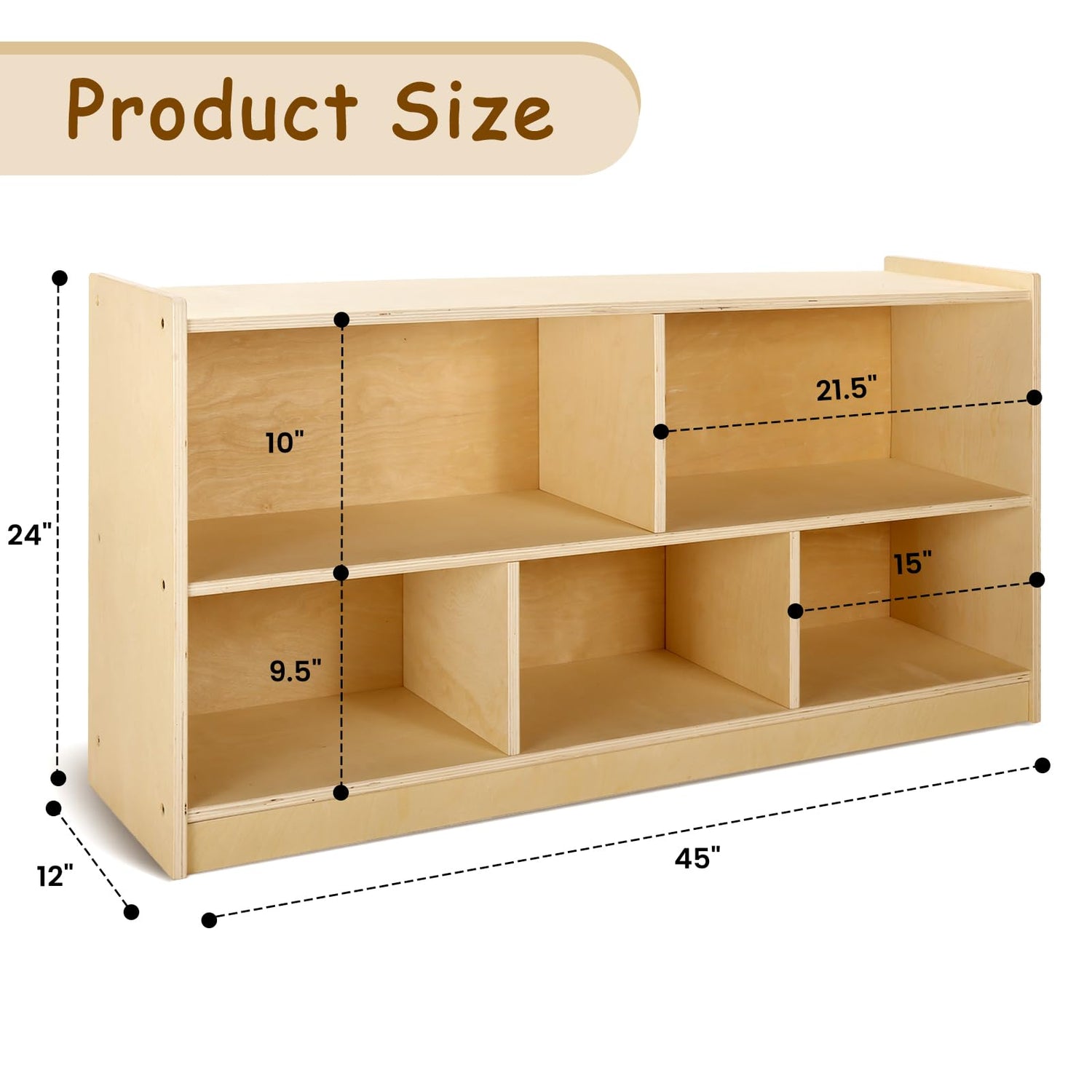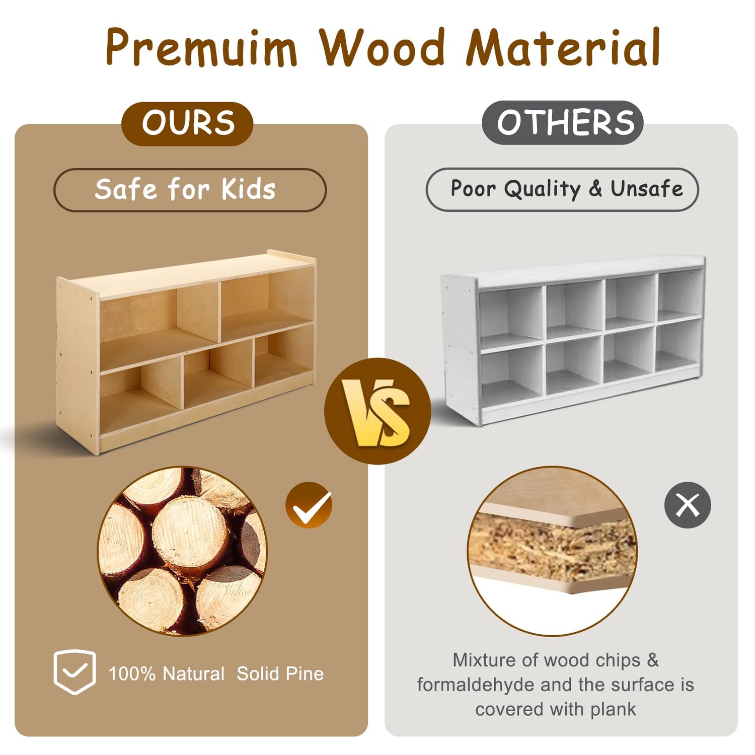 Wingyz Natural Wood 5-Section Montessori Bookshelf & Toy Storage Organizer for Kids