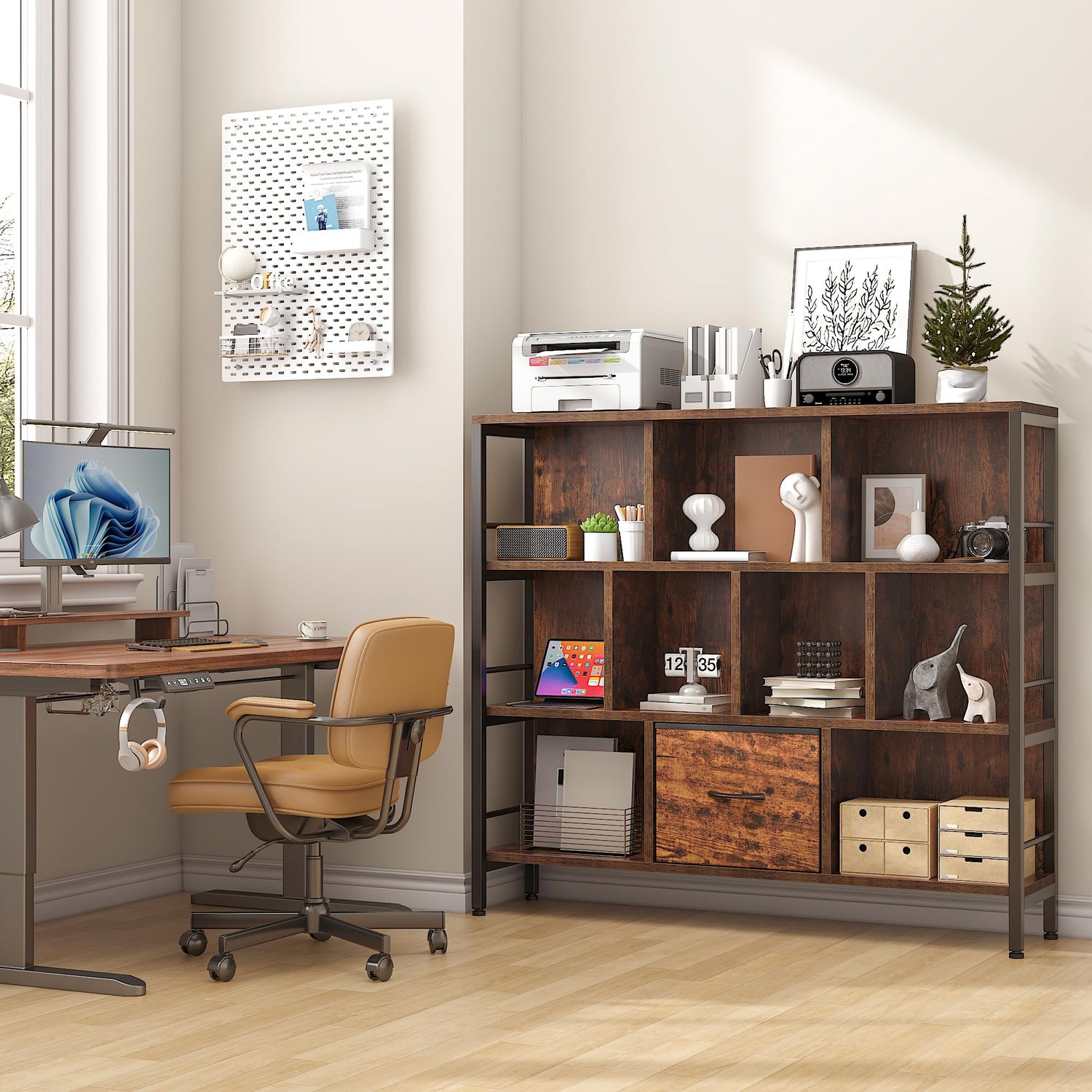 - Spacious Storage: With 10 cube compartments and 3 tiers of open shelves, this short bookshelf offers generous storage space to organize books, magazines, plants, and decorative items, keeping your space clutter-free.