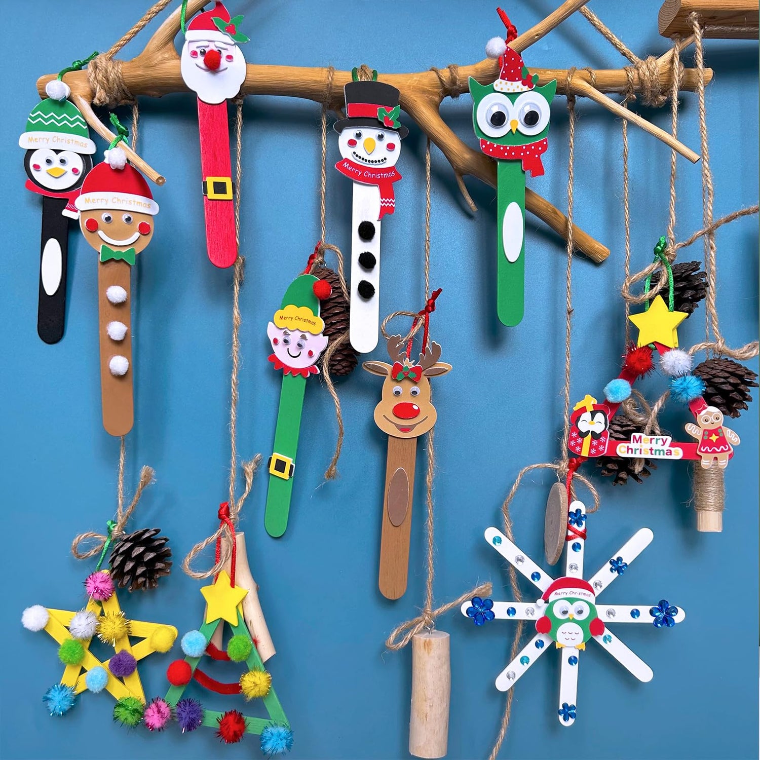 - Durable Material: These popsicle stick Christmas ornament craft kits include non-toxic painted birch wood sticks, adhesive backing foam Christmas stickers and Googly eyes. These Festive Popsicle Stick Crafts kits are easy and engaging for all ages, offering creative fun. No paint is required, you and your kids can easy to create these fun Christmas ornaments using these festive popsicle sticks crafts. Then add a ribbon to the top and hang them on the Christmas tree as a festive decoration.