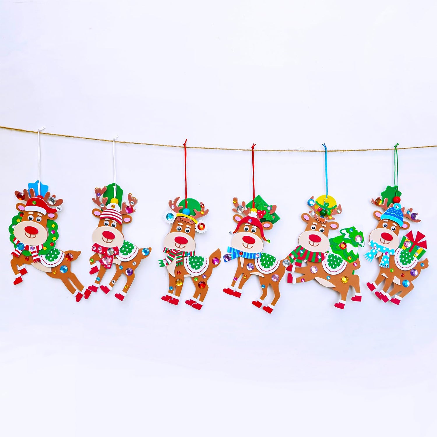 - Strong & Safe: The Reindeer ornament kits are made with 2mm thick, soft, sturdy foam that doesn't tear easily, perfect for kid. Foam Reindeer stickers and festival stickers keep their bright colors, even when kids stick and restick them many times. These Christmas reindeer ornament kits are light and easy to carry, so you can make ornaments wherever you go! Every sticker is easy to peel off and put back without any mess. Perfect for crafting at home, school, or on trips.
