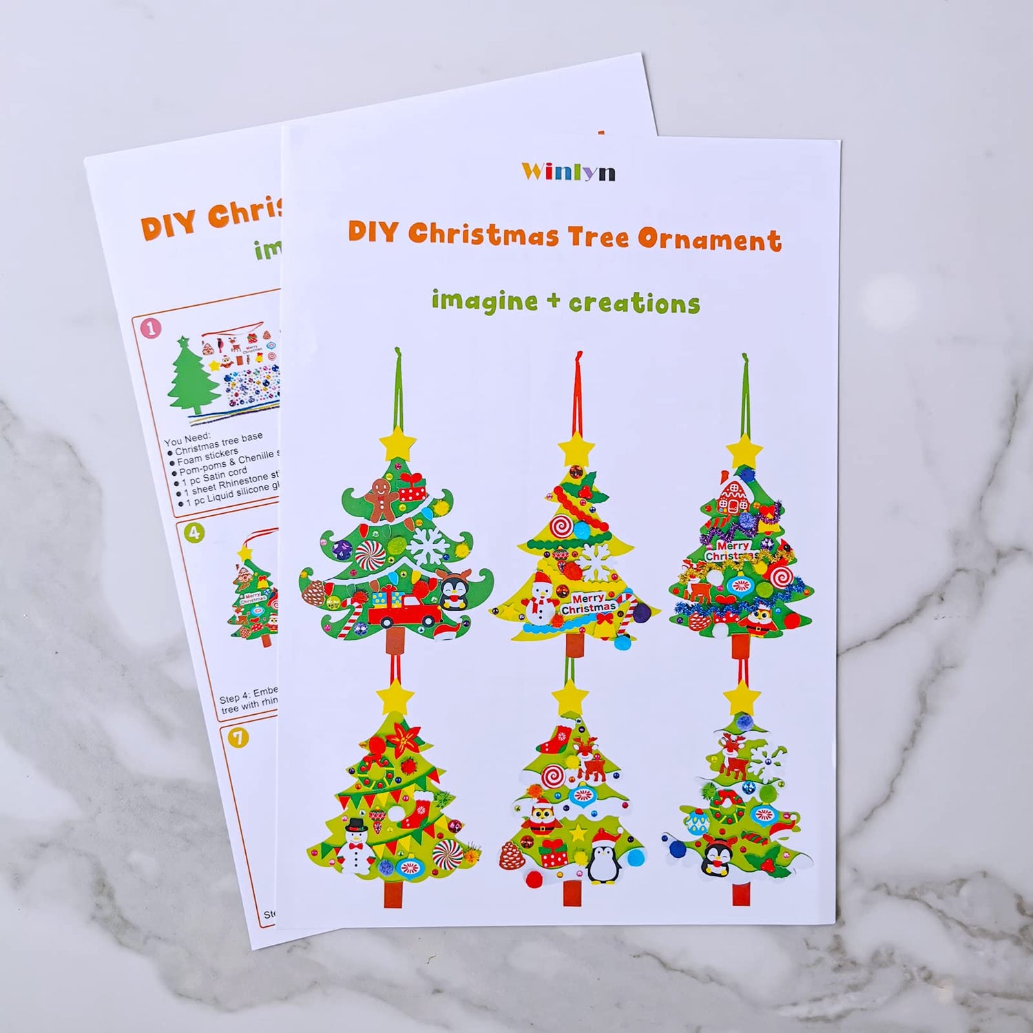 Winlyn 24 Sets Christmas Tree Ornaments Decorations Art Sets DIY Christmas Craft Kits Pine Tree Snowman Snowflake Penguin Foam Stickers Arts and Crafts for Kids Party Favors Home Classroom Activities