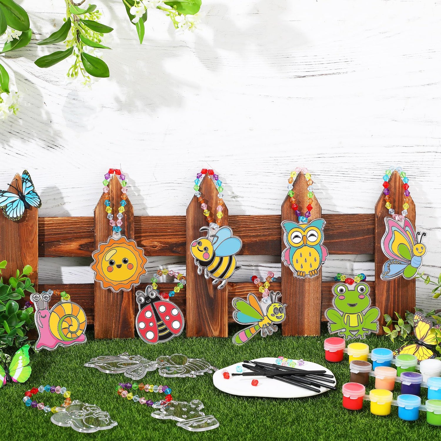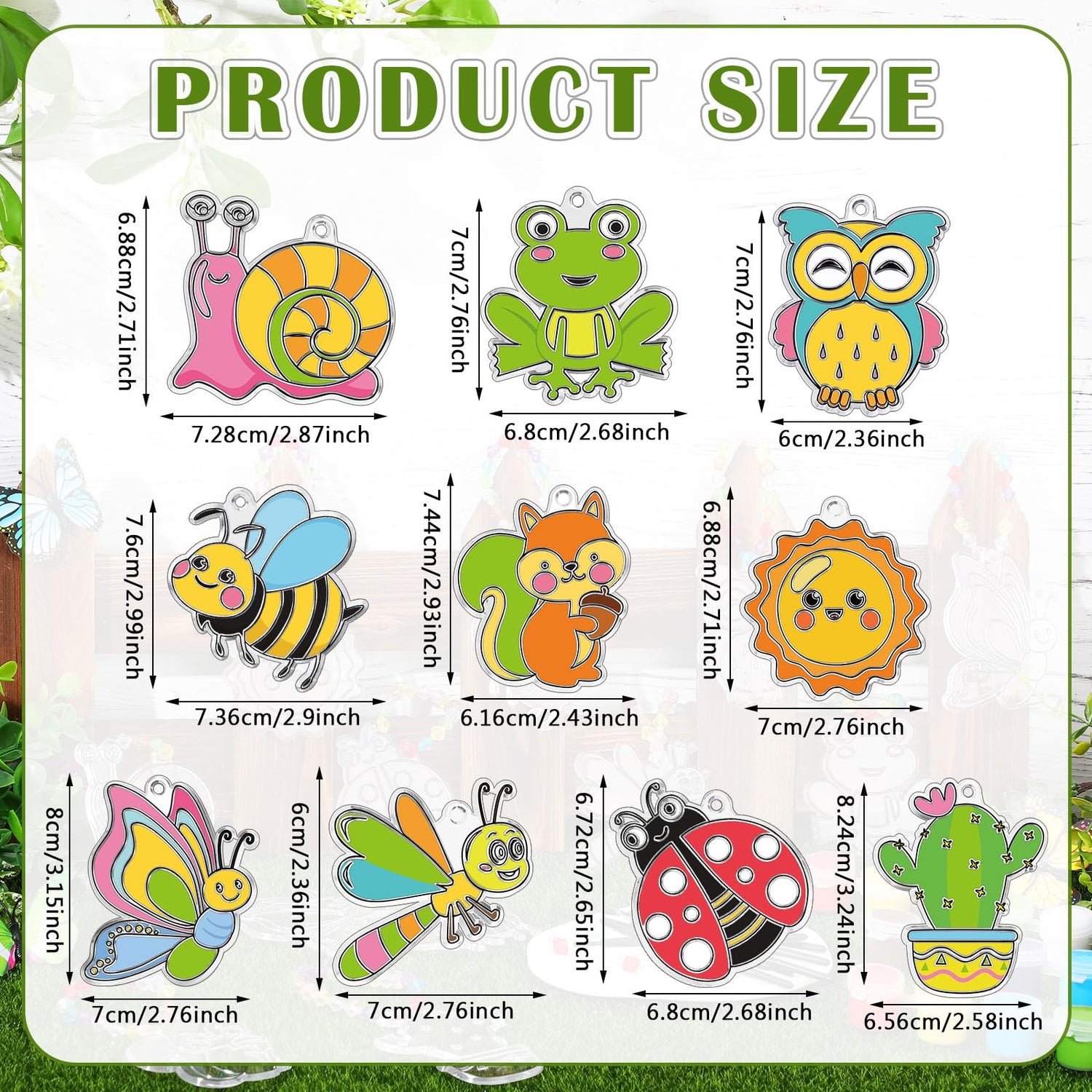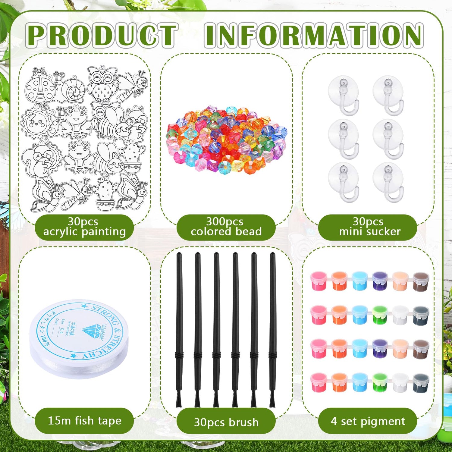 - Package Includes: you will receive 30 spring suncatchers window art kits include 30 sun catchers, 10 styles are butterfly, frog, honeybee, sun, cactus and so on, 3 of each style, 300 acrylic beads, 1 Roll 590.55 inches of fishing line, 30 paintbrushes (with enough paint), 30 suction hooks; Each set comes with a variety of designs and vibrant colors, mix and match to create special suncatchers for windows