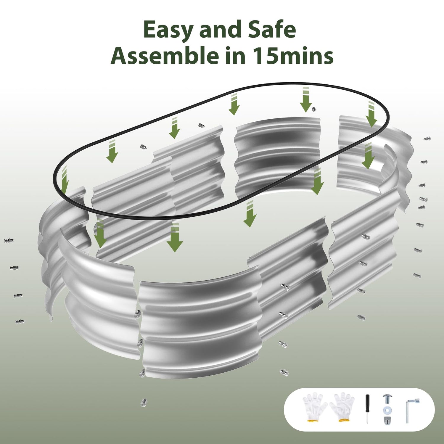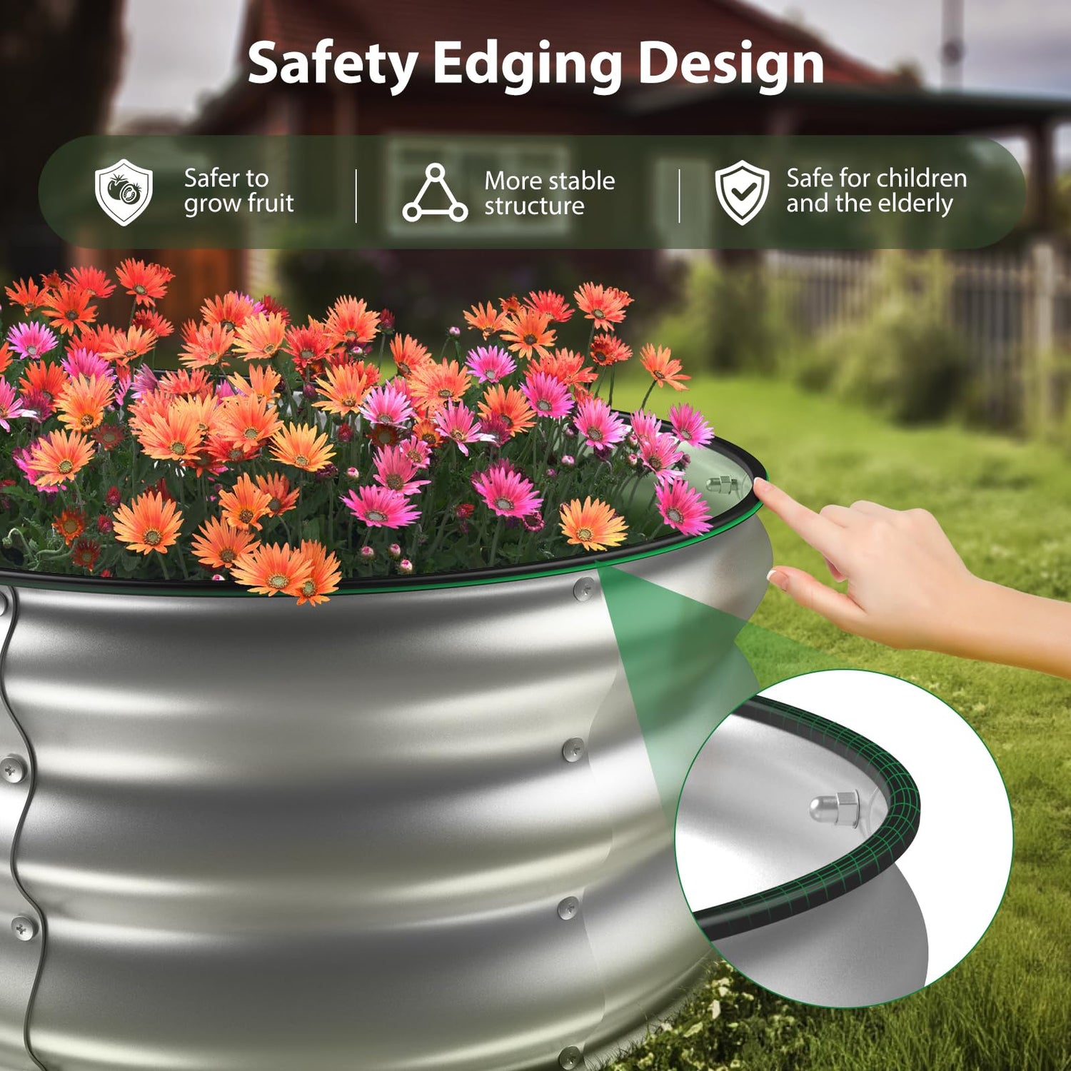 - Thickened Safety Edge: Oval designed metal raised garden beds outdoor with no sharp corners and there is a rubber edge to protect the you and your family from scratches