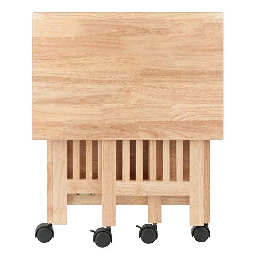Let's face it, life doesn't stay the same--and that means that your furniture has to be able to go with the flow, too. Enter Winsome Wood's foldable 4-tier shelf. Collapsible, portable, and versatile, it may live in the office this week, the kitchen next month, and the bedroom next year. This stylish Mission-style unit is made of solid beechwood and offers a roomy top counter and two open shelves framed by slatted sides and simple square legs. Four black casters roll it wherever it's needed, then lock securely to keep it there until the next trek. When it's time to put the shelf away, the hinged sides and top fold down to a flat, neat package. Want a totally flexible décor? Add more of Winsome Wood's foldable pieces from shoe racks to desks to wine tables. It's like origami for your furniture! This shelf measures 24 inches wide by 16.2 inches deep by 27.2 inches high. --Kara Karll