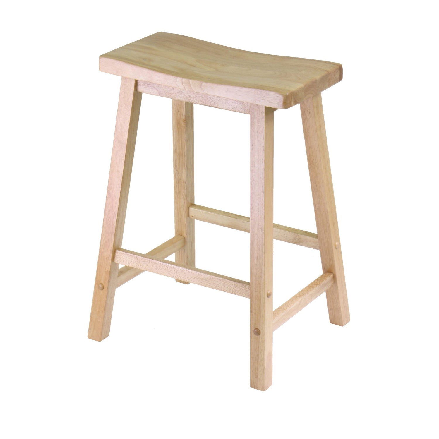 This contemporary saddle seat 24" wood counter height stool is a great addition for seating in the kitchen or dining area.