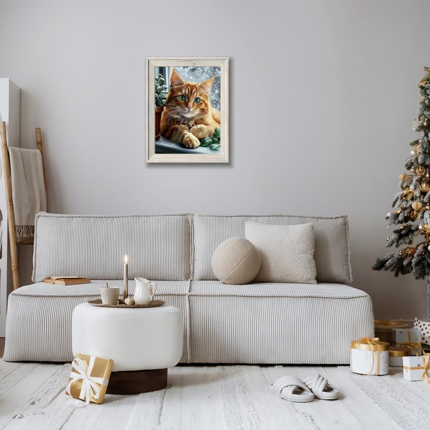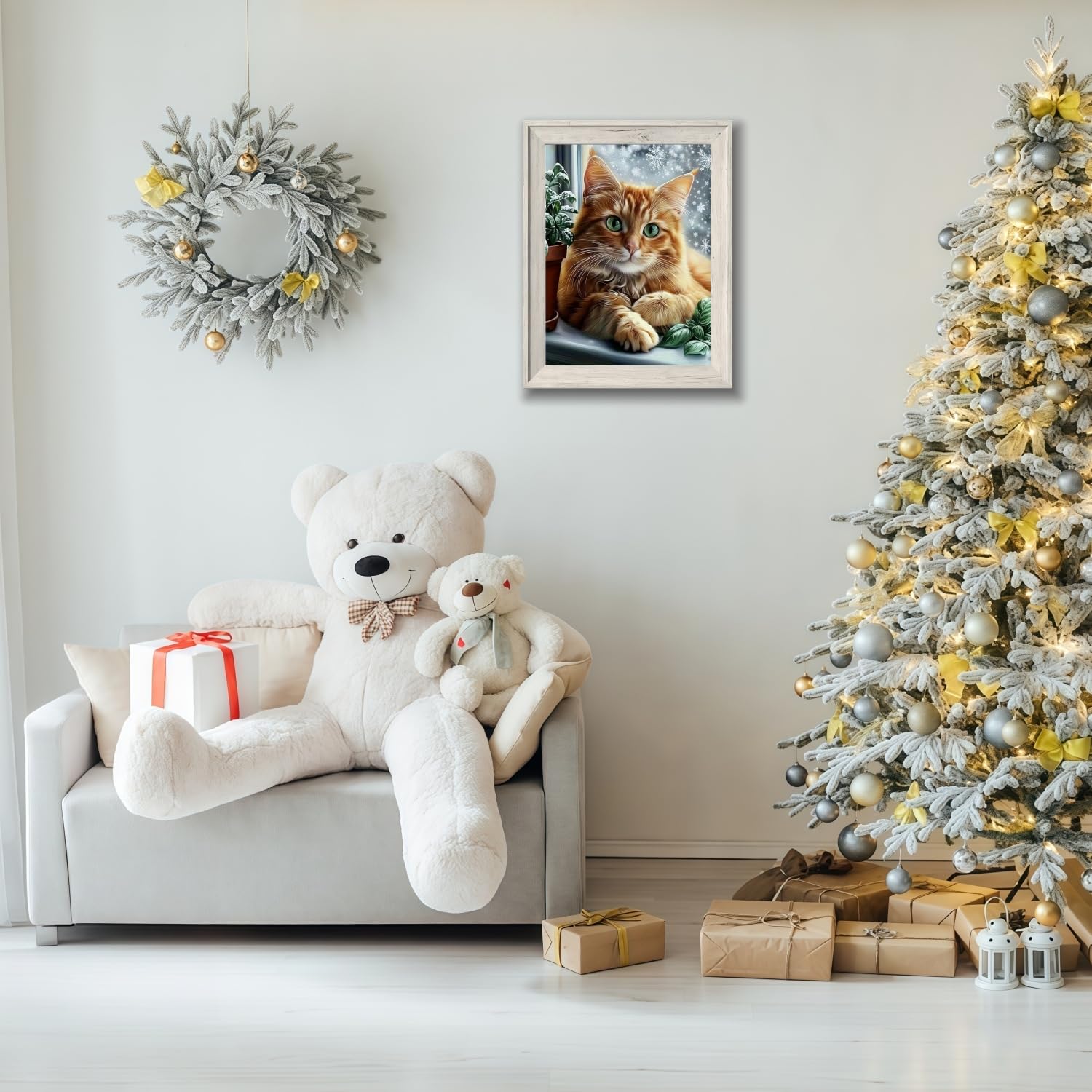 Winter 5D Diamond Art Kits for Adults Beginners,Cat DIY Full Round Drill Diamond Painting Kits,Animal Paint by Diamonds Dots Gem Art Easy,Home Wall Decor 12X16 Inch