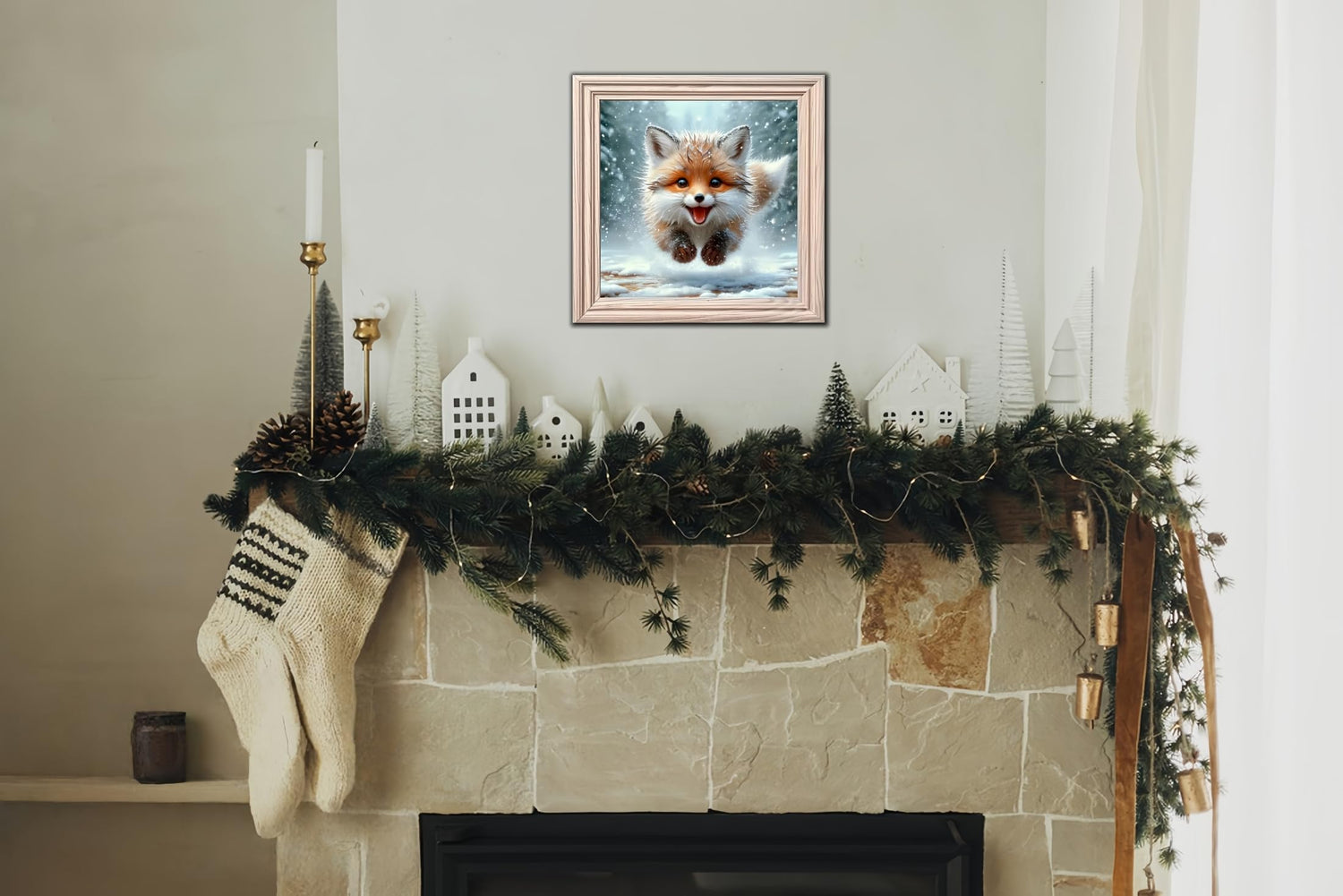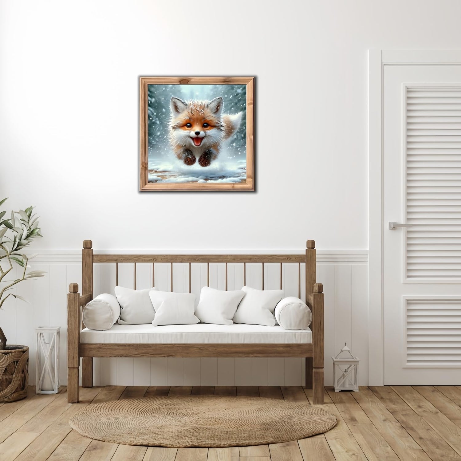 Winter 5D Diamond Art Kits for Adults Beginners,Cute Fox DIY Full Round Drill Diamond Painting Kits,Animal Paint by Diamonds Dots Gem Art Easy,Home Wall Decor 14X14 Inch
