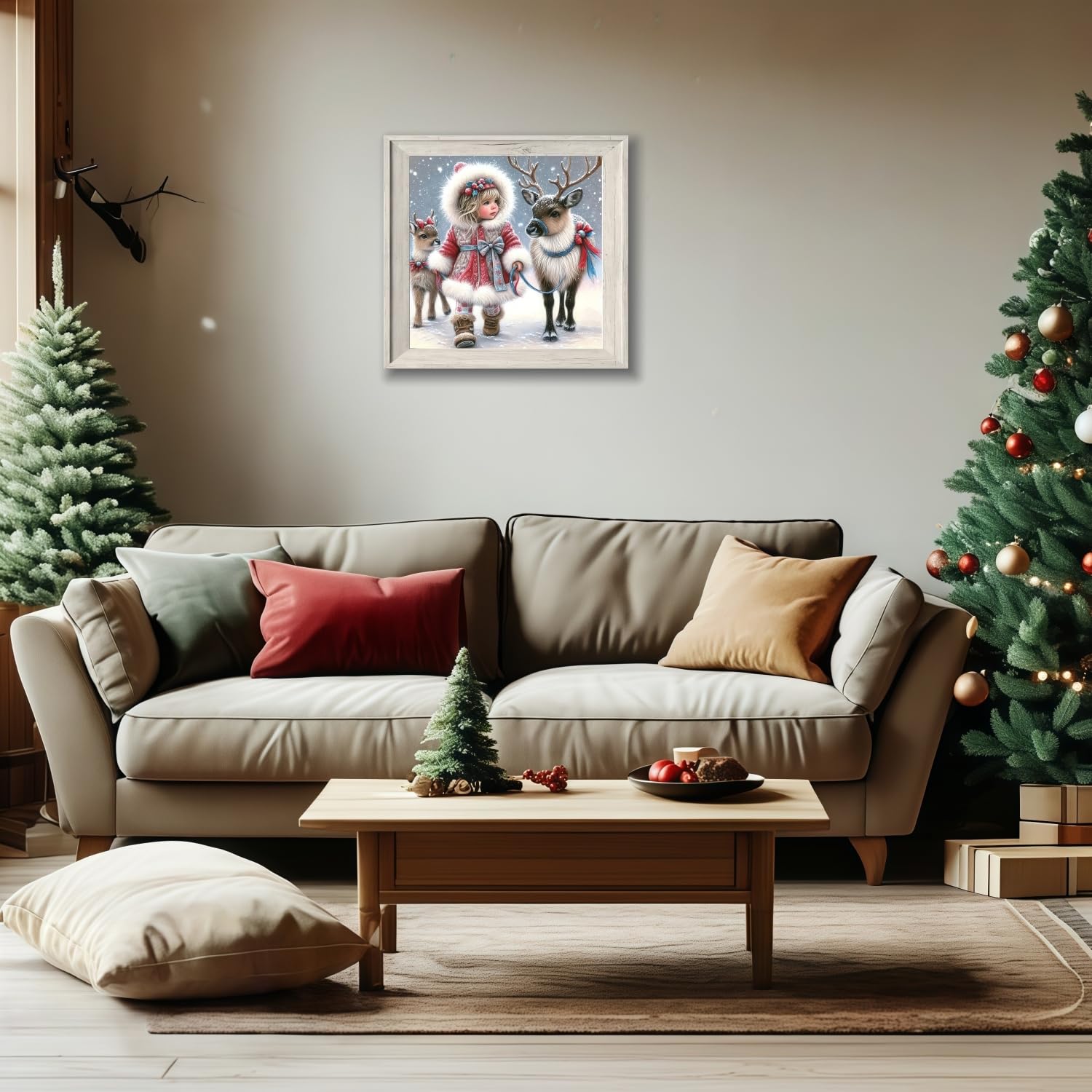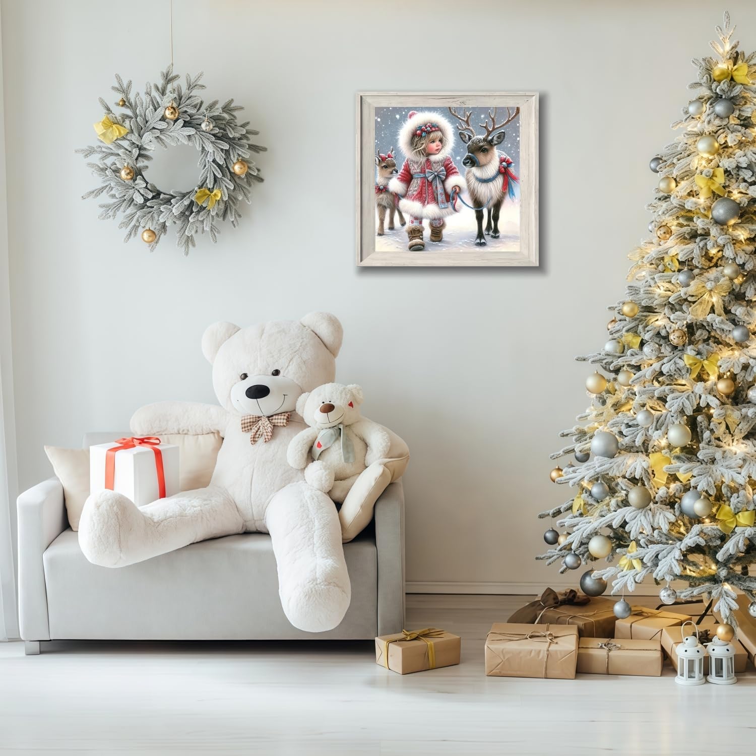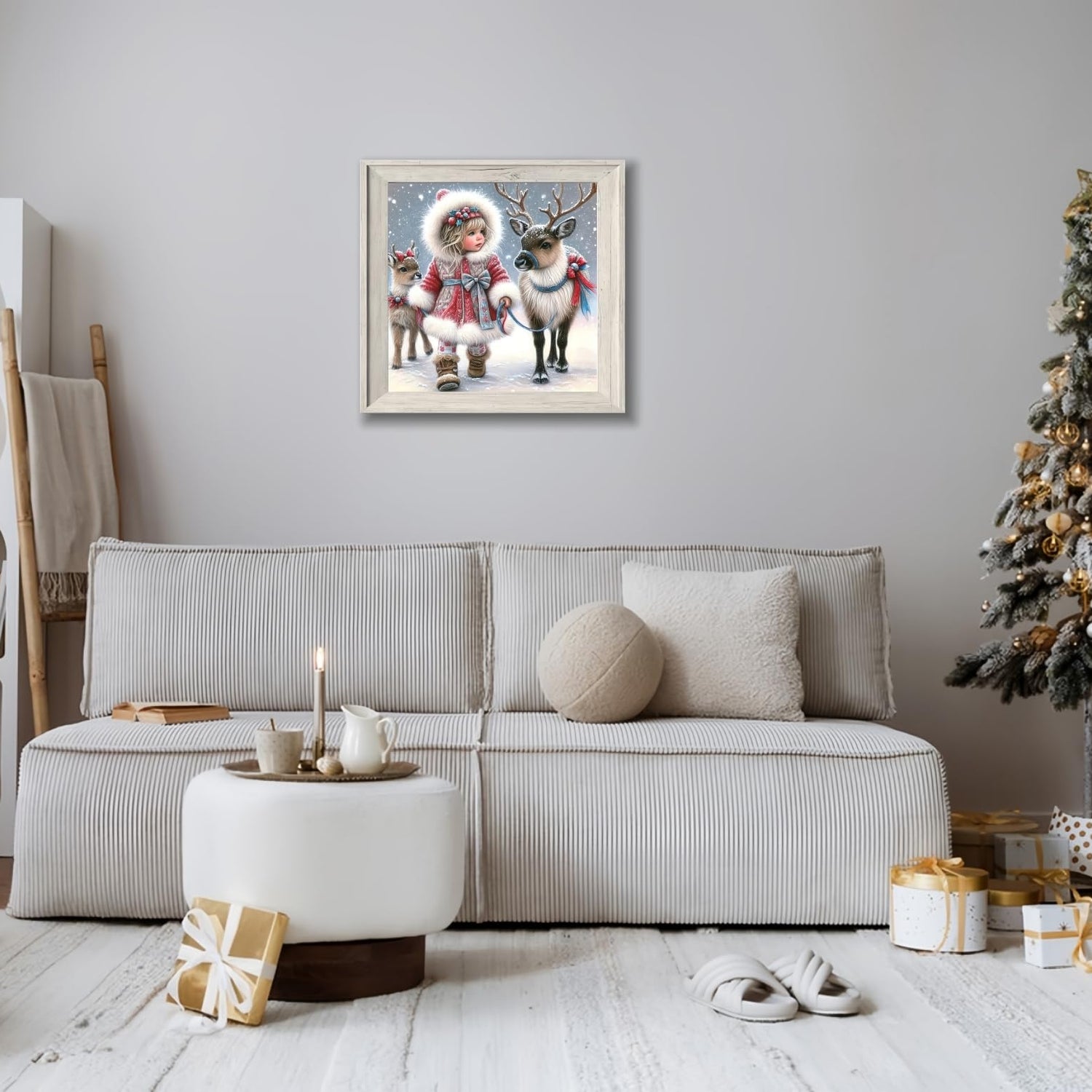 Winter 5D Diamond Art Kits for Adults Beginners,Deer DIY Full Round Drill Diamond Painting Kits,Moose Animal Paint by Diamonds Dots Gem Art Easy,Home Wall Decor 14X14 Inch