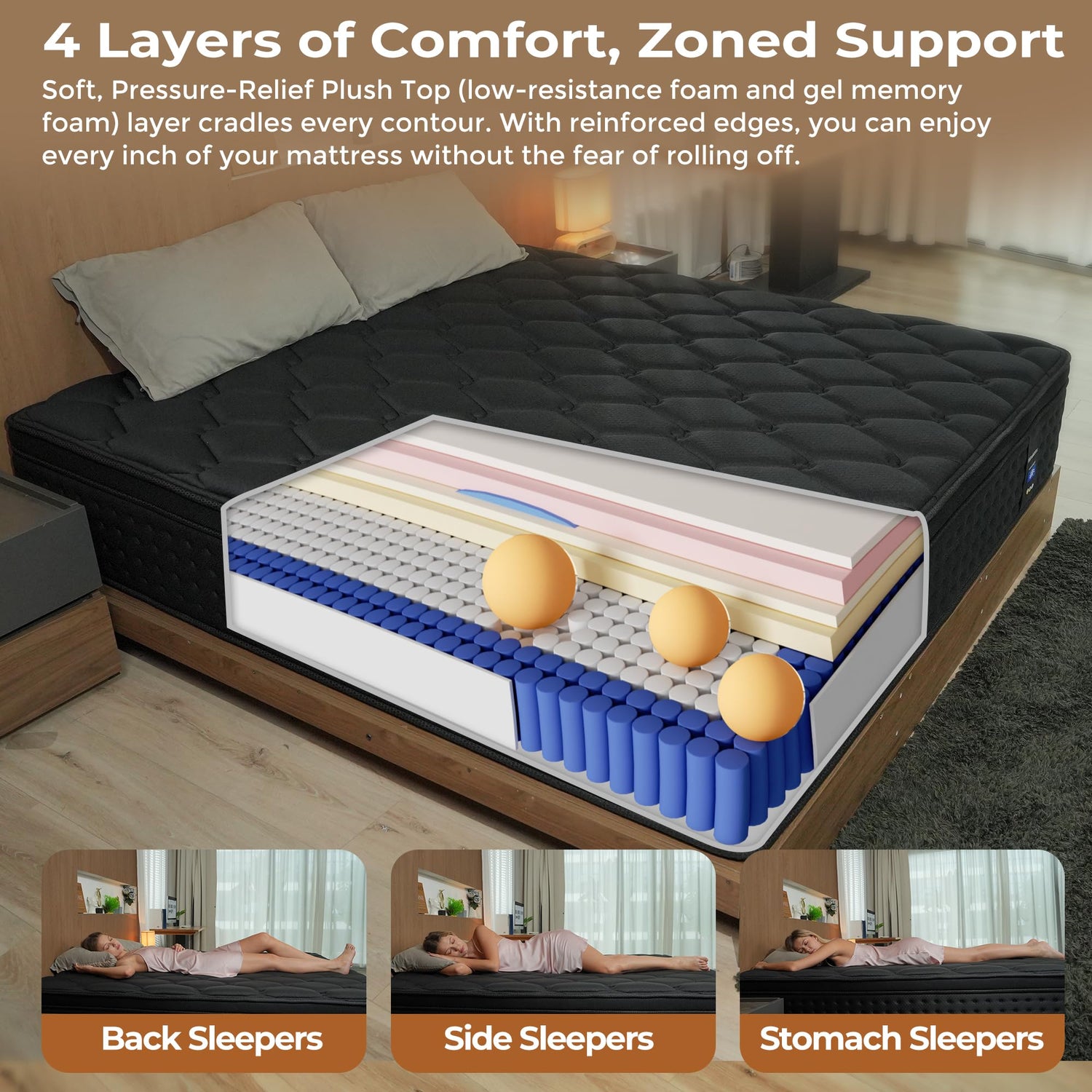 - 【Quality Twin Size Mattress】 Individually wrapped coils for bounce & support + plush memory foam for pressure relief. Perfect for cminimizes motion transfer. Responsive coils enhance support and isolate movement, perfect for couples and pet lovers. With reinforced edges, you can enjoy every inch of your mattress without the fear of rolling off.