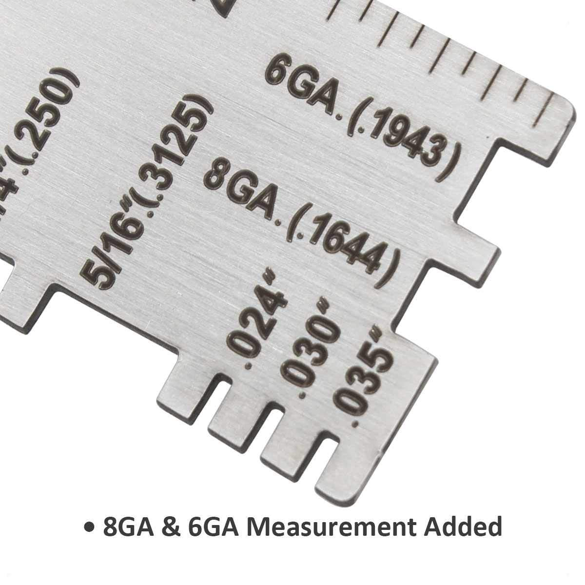 - Updated Thickness Gauge of 229895—— This is a gauge which is updated by miller 229895 thickness gauge. It has more clear scales and easy to read the data. And on the other side is a ruler design (Range: 0-2 inch, Increment: 1/16'').