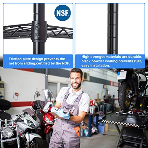 - ☀【Extremely Durable】: This commercial storage shelf was made of heavy duty steel and coated with , metal rack have excellent rust resistance. Weight limit of each wire shelving unit is 250 pounds, and the total weight limit of the whole shelf is 1000 pounds when equally distributed on feet levelers. Storage shelf metal rack wire unit