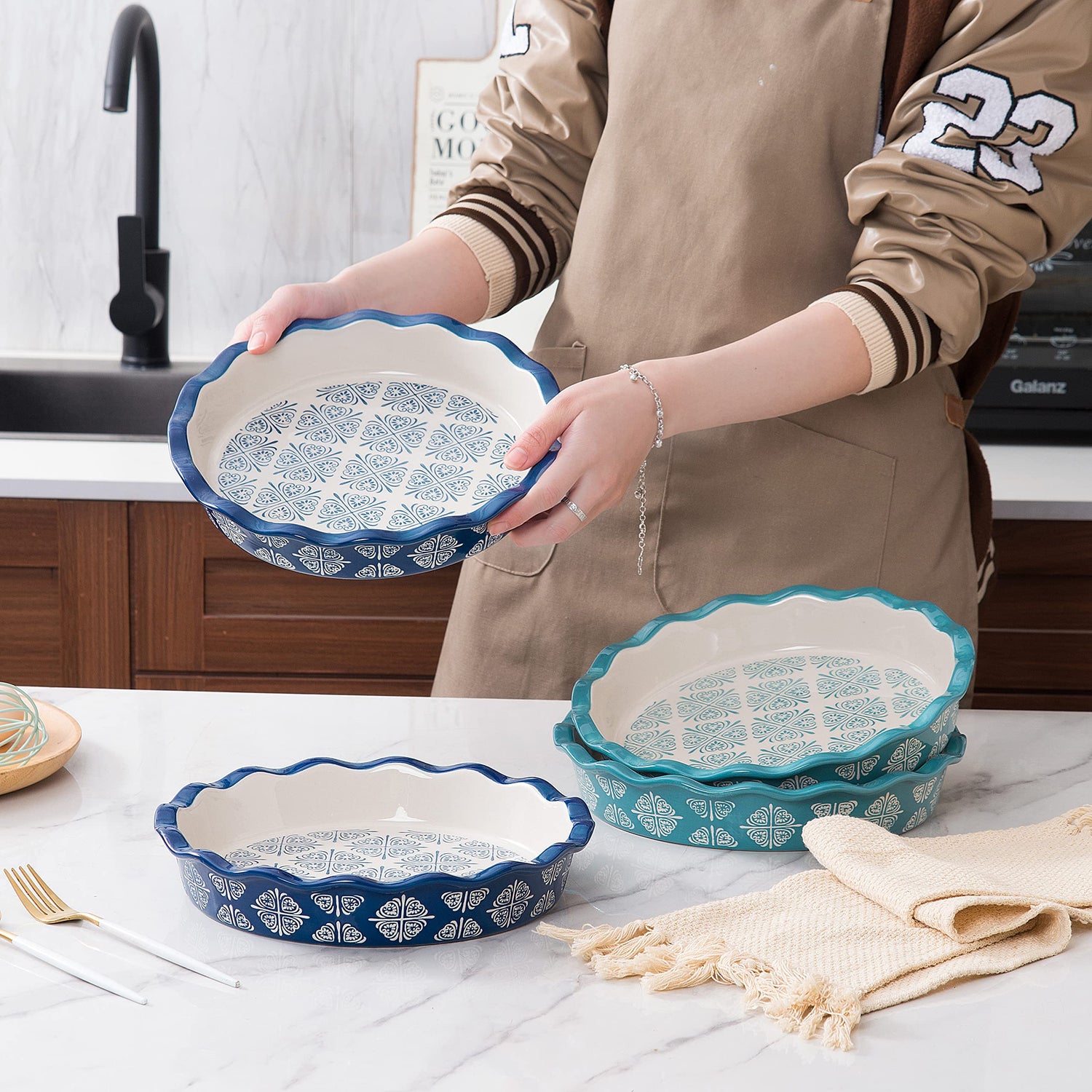Wisenvoy Pie Pan Ceramic Pie Dish Blue Pie Plate Porcelain Deep Dish Pie Pan Non-Stick Pie Pans