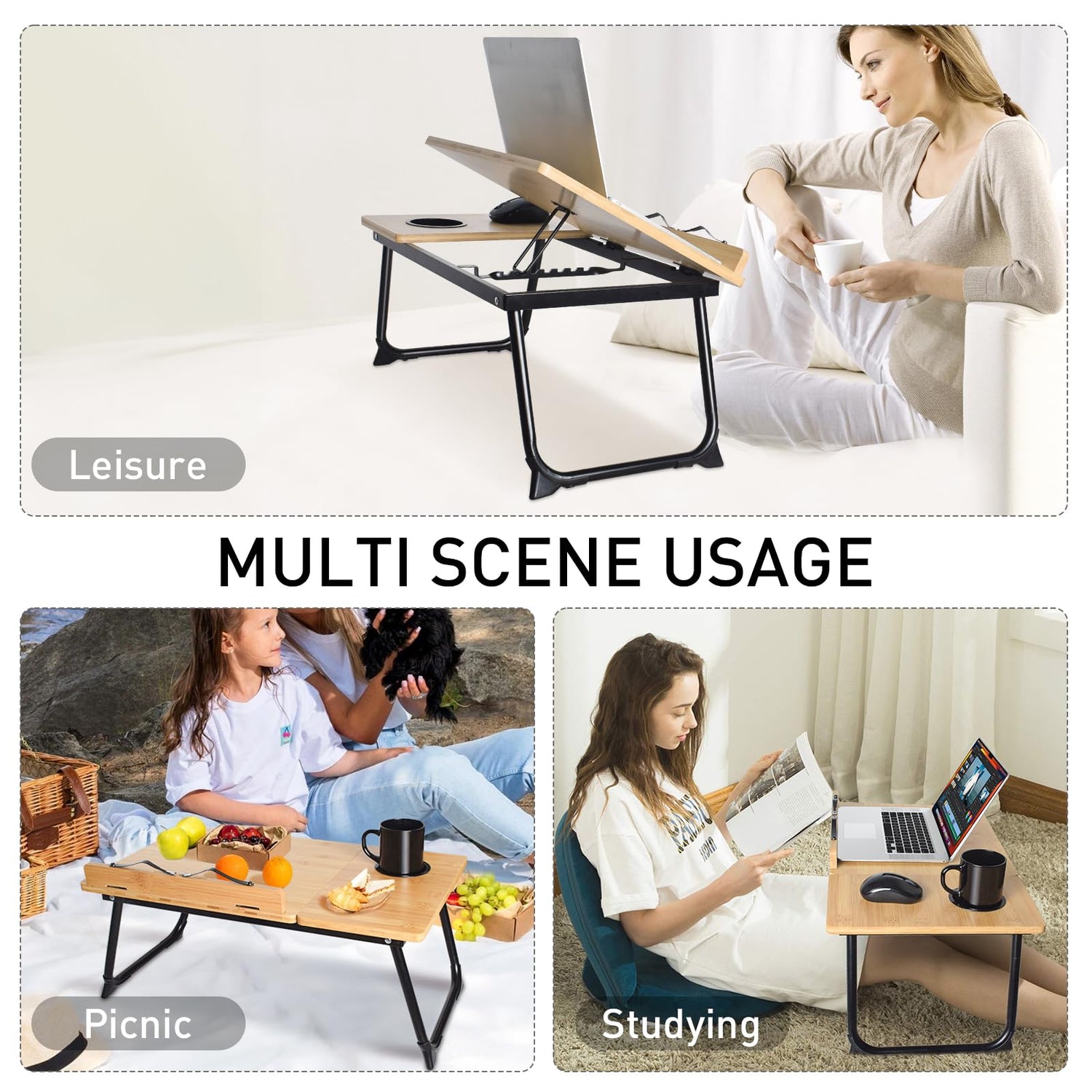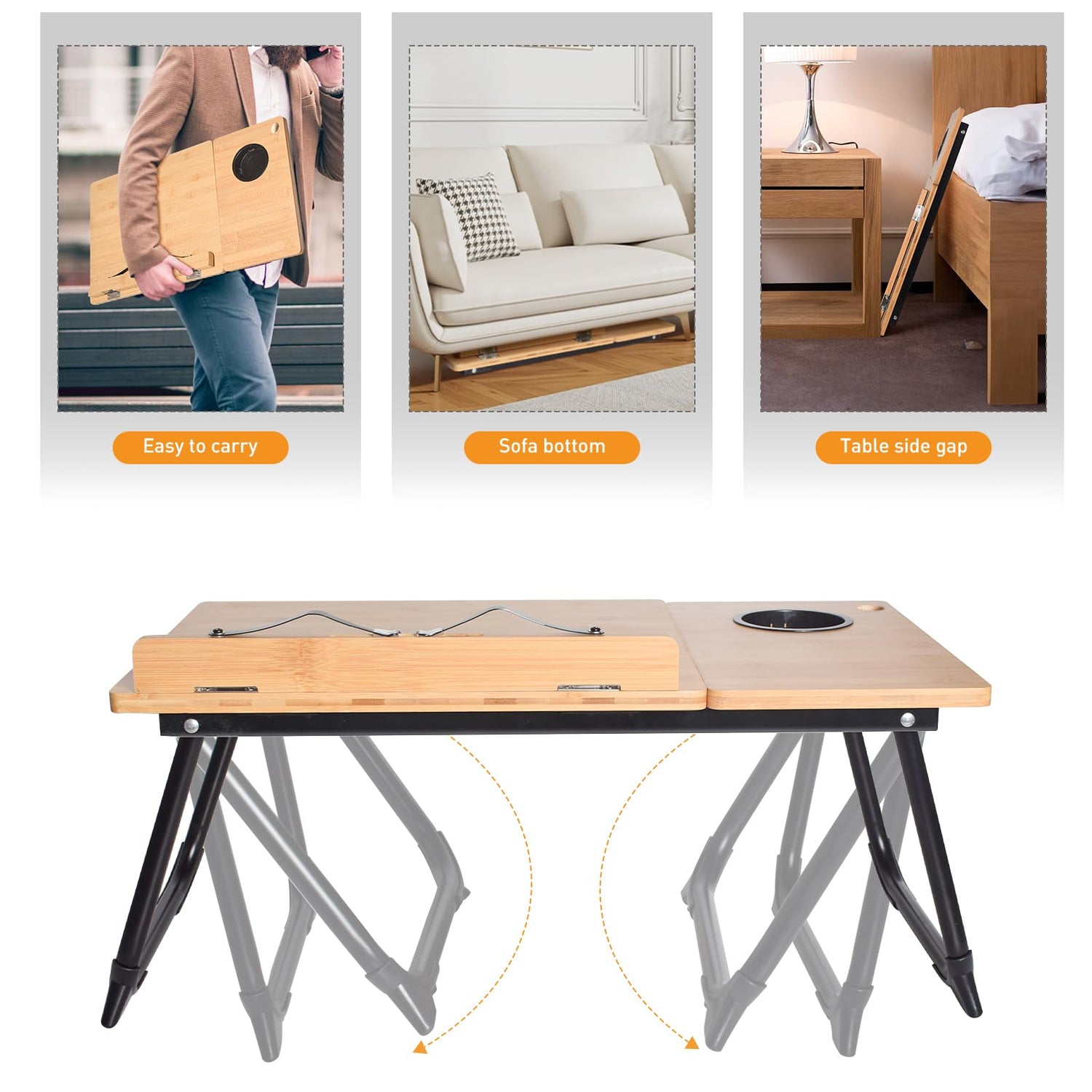 wishacc Book Stand for Reading in Bed, Bamboo Laptop Stand Adjustable Book Holder Tray with Page Paper Clips Multi Angles Adjustable Cooking Bookstands for Textbook Recipe Magazine Tablet Portable
