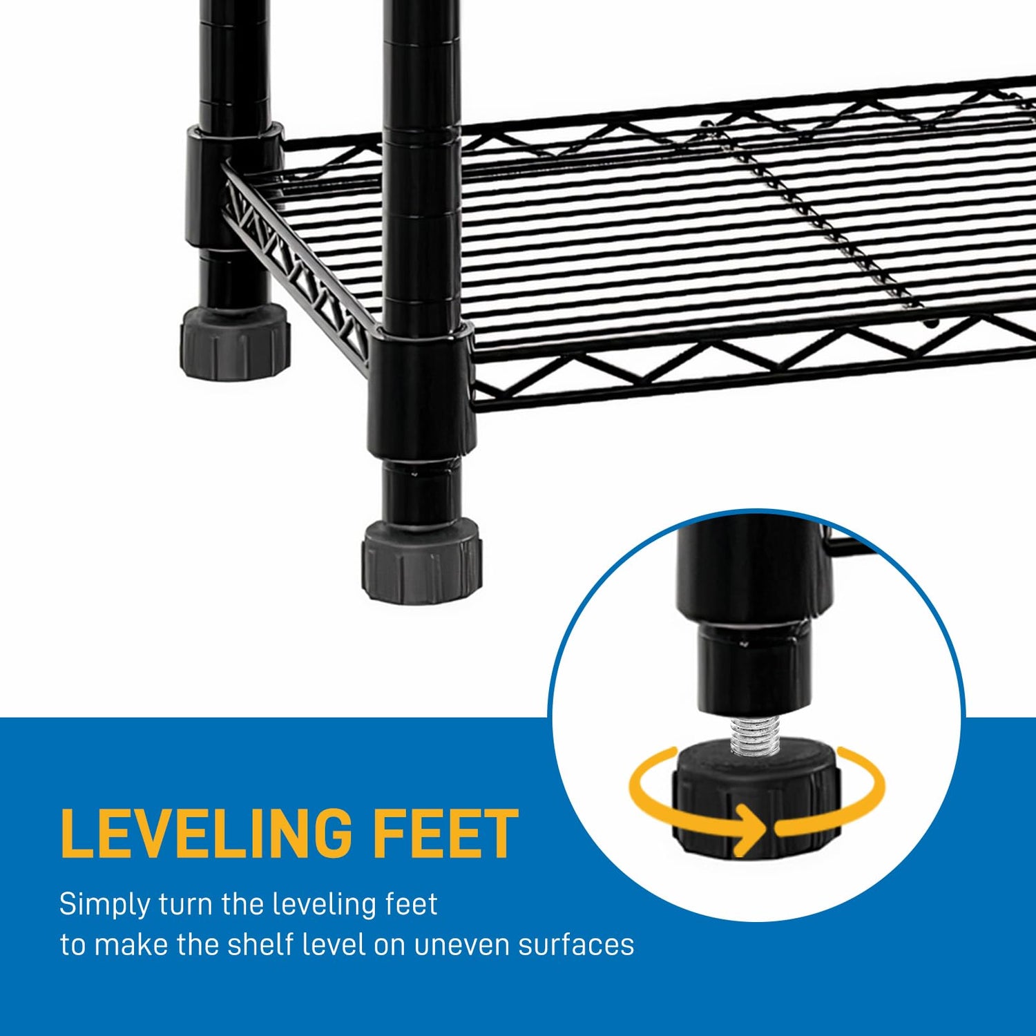 • 【Adjustability】The metal shelving offers plenty of space for creativity, you can flexibly adjust the height according to your needs. Leveling feet allow the metal shelf to be placed, for maximum stability on uneven ground.