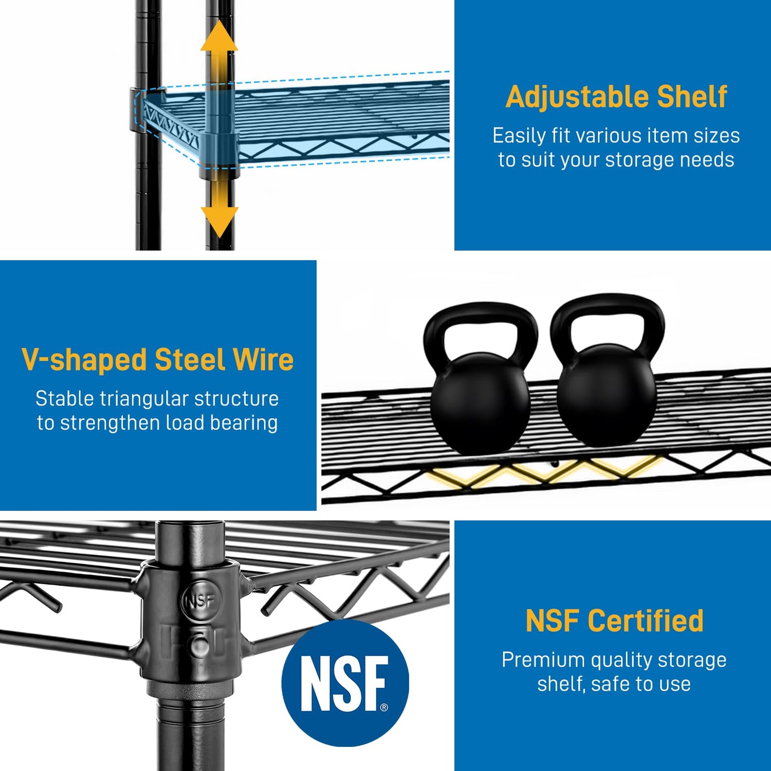 WISLAS 4 Tier Storage Racks Shelving, Heavy Steel Pantry Shelves, Adjustable Wire Shelving Rack, Suitable for Garage, Kitchen, Bathroom, Office, 16" W x 12" D x 50" H, Black