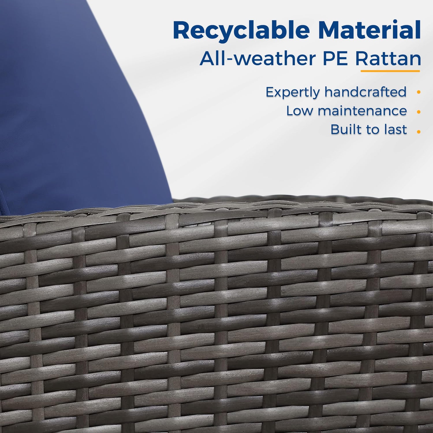 Wisteria Lane 4 Piece Outdoor Patio Furniture Sets, Wicker Conversation Set for Porch Deck, Grey Rattan Sofa Chair with Cushion (Blue