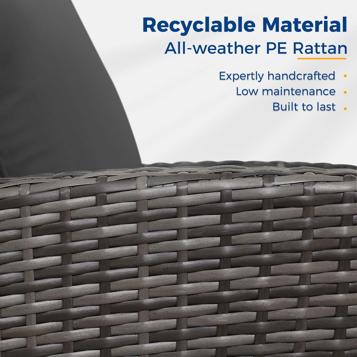 - 【Durable and Long-lasting Outdoor Patio Furniture】Experience the durability and reliability of this 4-piece patio furniture set. Crafted with premium PE rattan and a sturdy powder-coated steel frame, it is built to withstand any weather condition, ensuring years of outdoor enjoyment. Whether you have a balcony, lawn, garden, or poolside, this set is perfect for all outdoor spaces.