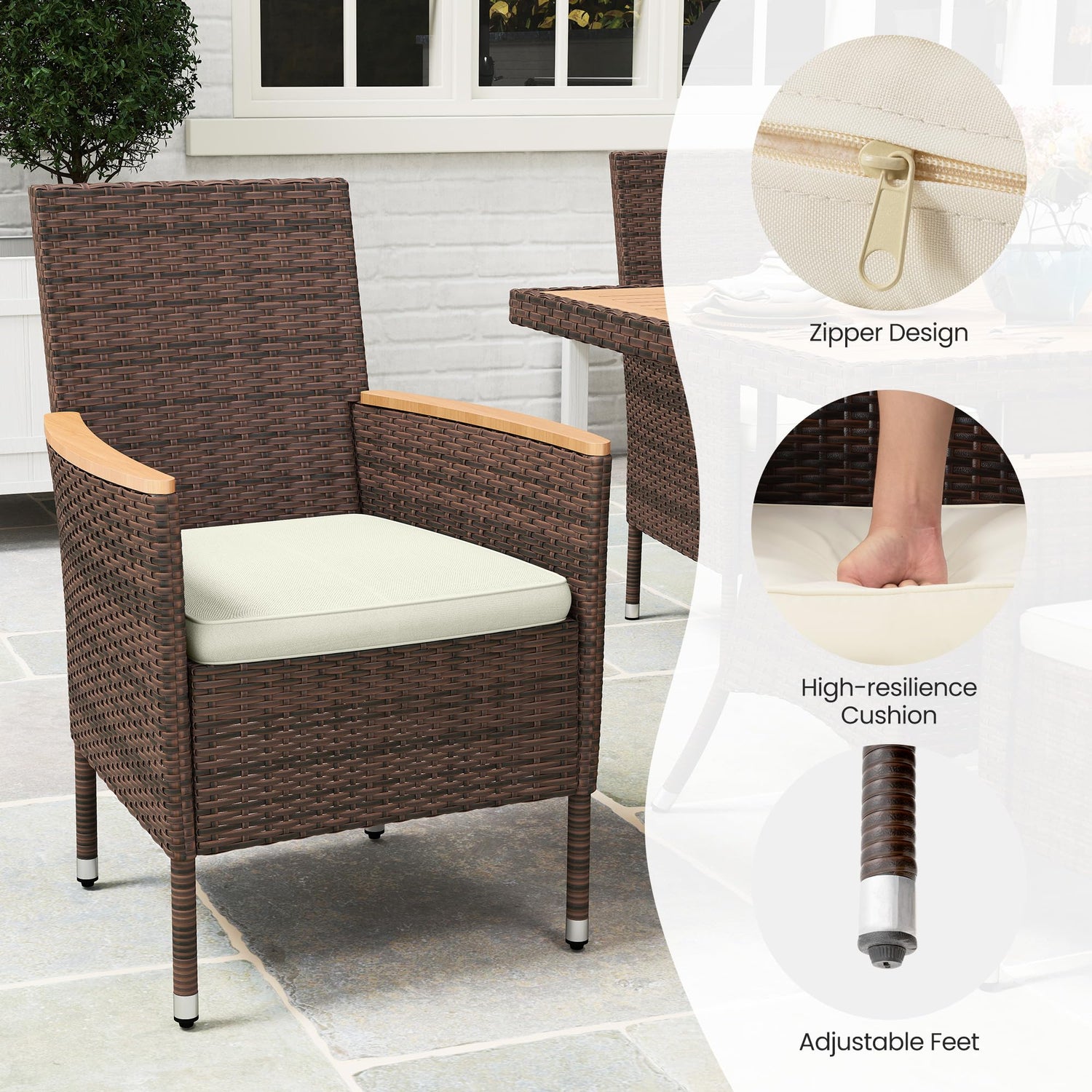 - 【Modern Charm】 Featuring a modern classic design, this patio dining furniture blends simplicity and elegance for a timeless style that fits any outdoor space. Choose from 2 stylish colors—grey and brown—to suit your preferences. Transform gardens, backyards, porches, patios, or poolside into sophisticated, comfortable outdoor retreats.