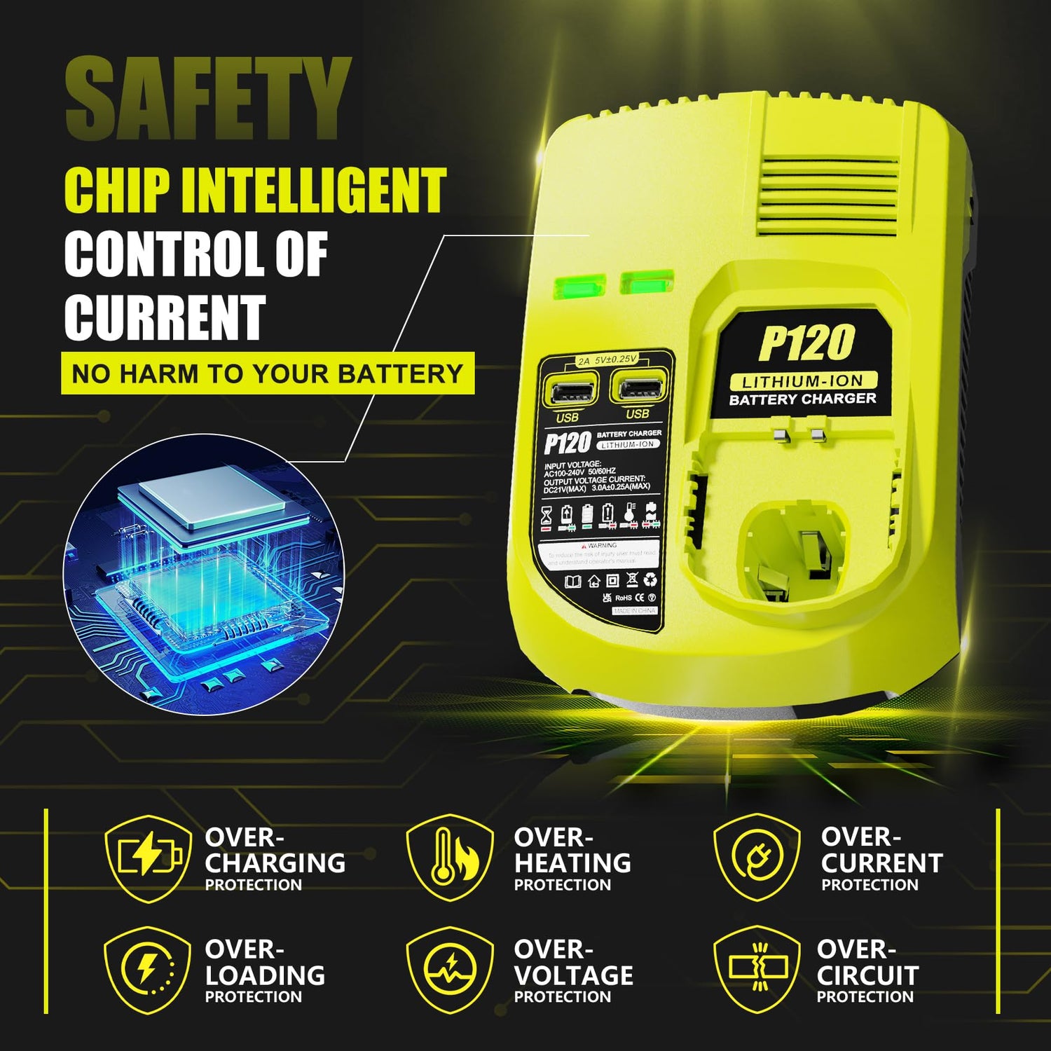 - ✔【Safe Protection】This replacement for ryobi charger built-in multiple safety protection measures to prevent battery overheat, overcurrent, overload, overcharge and short circuit. 18 months warranty. 24*7 hours prompt customer service.