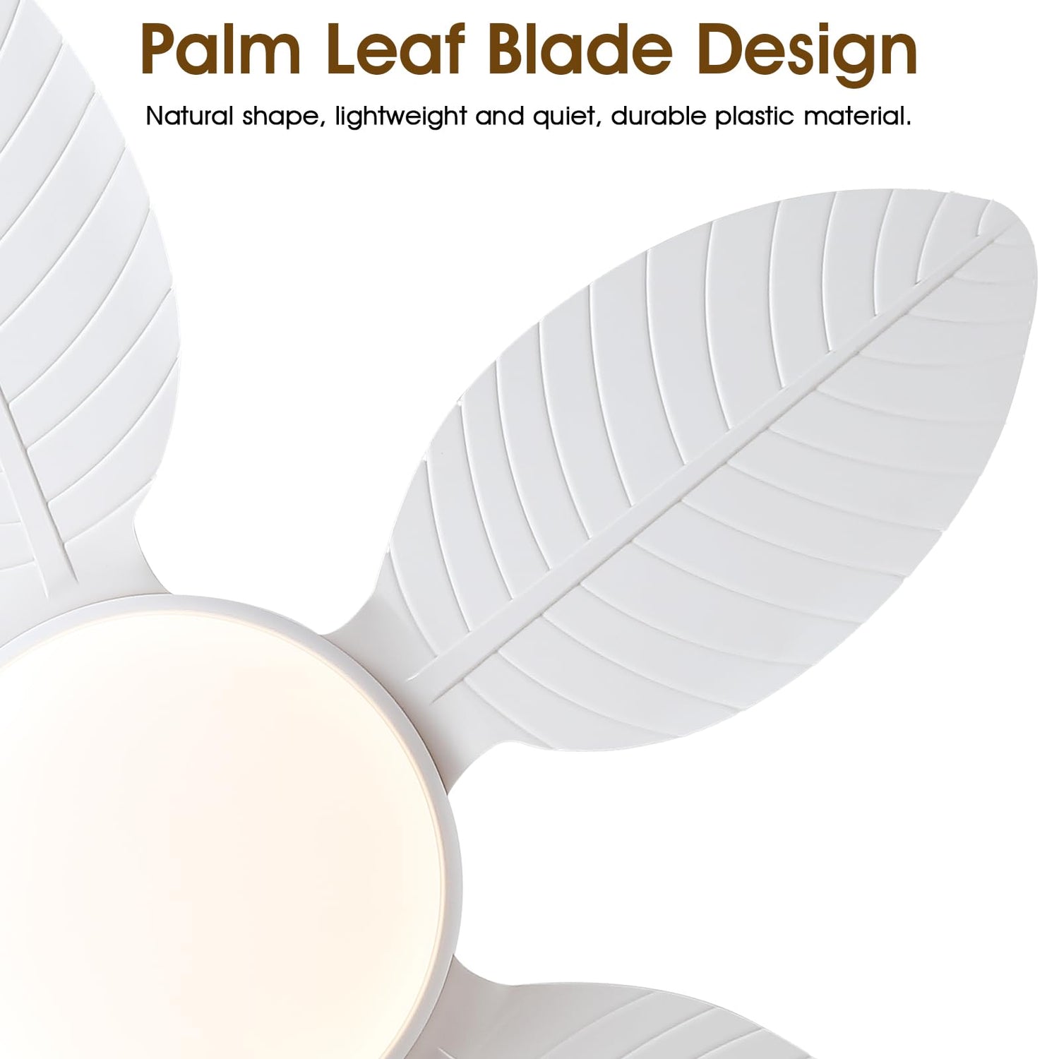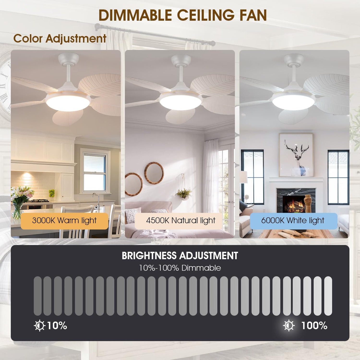 Wiviniya Ceiling Fans with Lights and Remote/APP Control, 48 Inch Tropical Ceiling Fan for Bedroom Living Room, Outdoor Palm Leaf Ceiling Fan for Patios Porch, Dimmable, 6 Speeds, Reversible, White