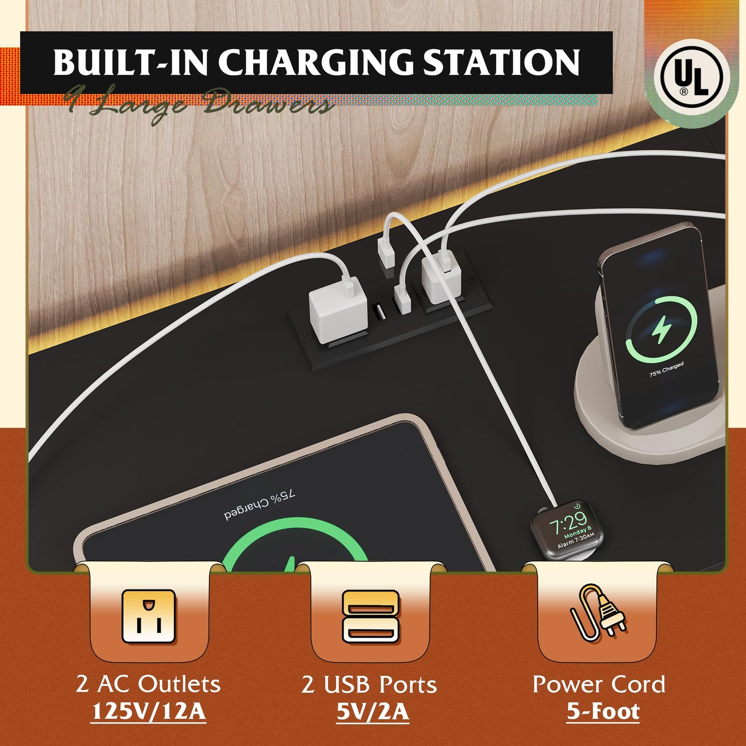 - 【✨ Powered Storage Cabinet】Say goodbye to messy wires! TV entertainment center is equipped with 2 AC sockets +2 USB ports, 1.5m flexible cable length, TV, game console, router a power board can be done, instant increase desktop cleanliness by 50%, through UL/ETL certification, electricity safety!