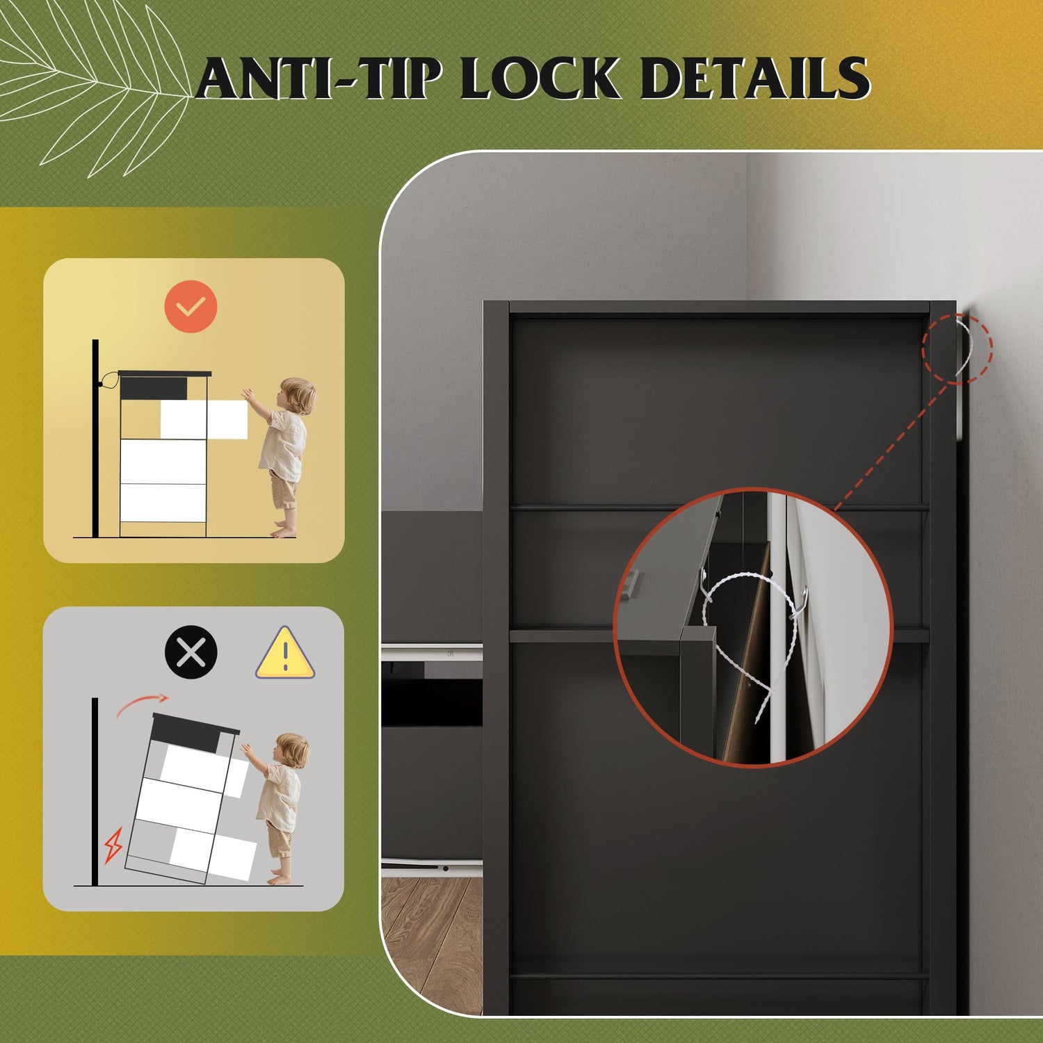 - 【✨ Stable Structure Safety Assured】This bedroom dresser is designed with thick columns on both sides and a reinforced base at the bottom. The entire cabinet bearing up to 228LBS can still remain stable without tipping. Additional anti-tilt device can easily fix the cabinet to the wall, ensuring the safety of you, your family and pets, and enjoying a convenient life!