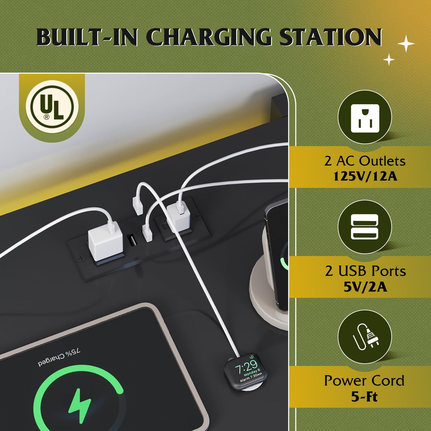 - 【✨ Powered Storage Dresser】Say goodbye to messy wires! TV entertainment center is equipped with 2 AC sockets +2 USB ports, 1.5m flexible cable length, TV, game console, router a power board can be done, instant increase desktop cleanliness by 50%, through UL/ETL certification, electricity safety!