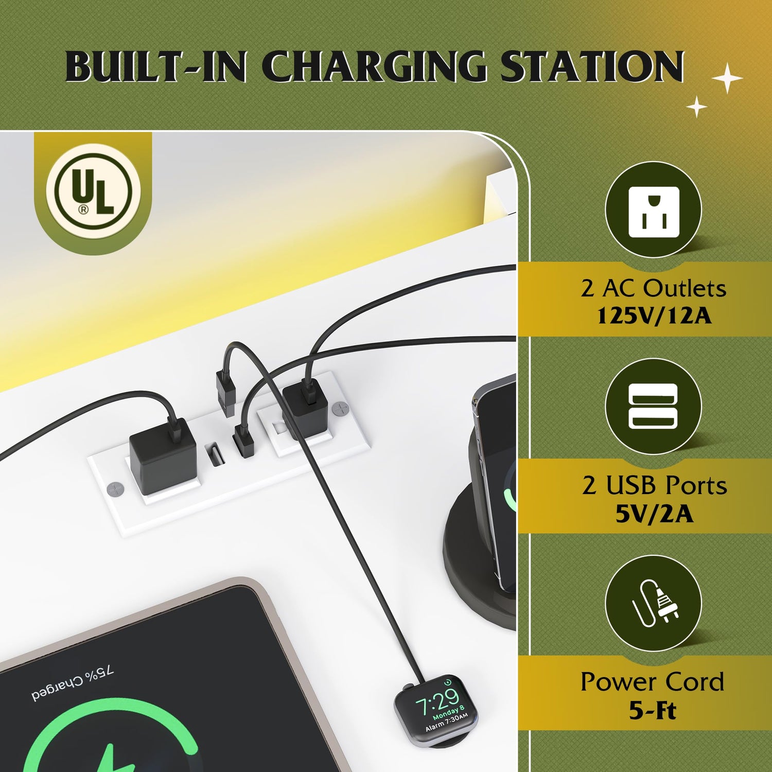 - 【✨ Powered Storage Dresser】Say goodbye to messy wires! TV entertainment center is equipped with 2 AC sockets +2 USB ports, 1.5m flexible cable length, TV, game console, router a power board can be done, instant increase desktop cleanliness by 50%, through UL/ETL certification, electricity safety!