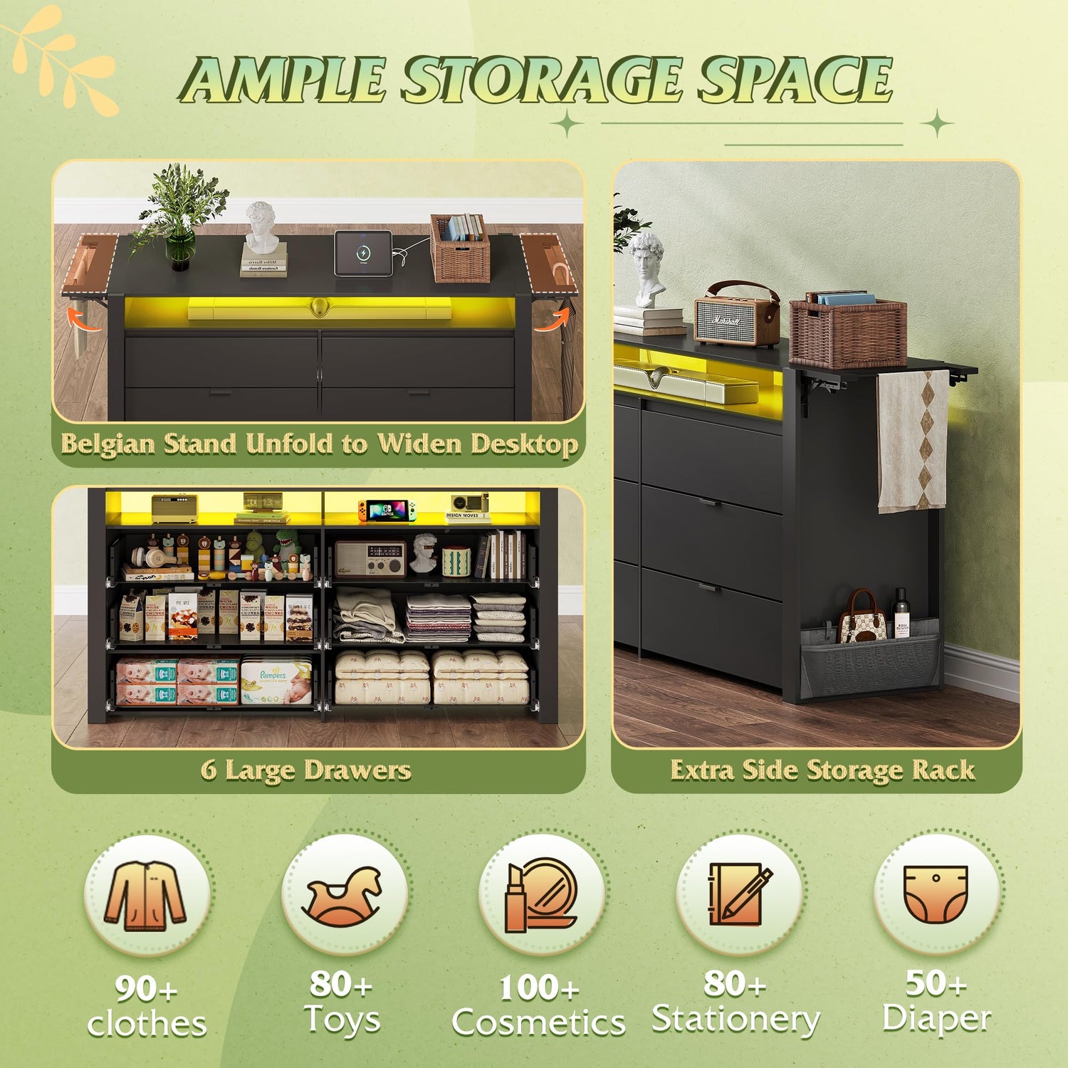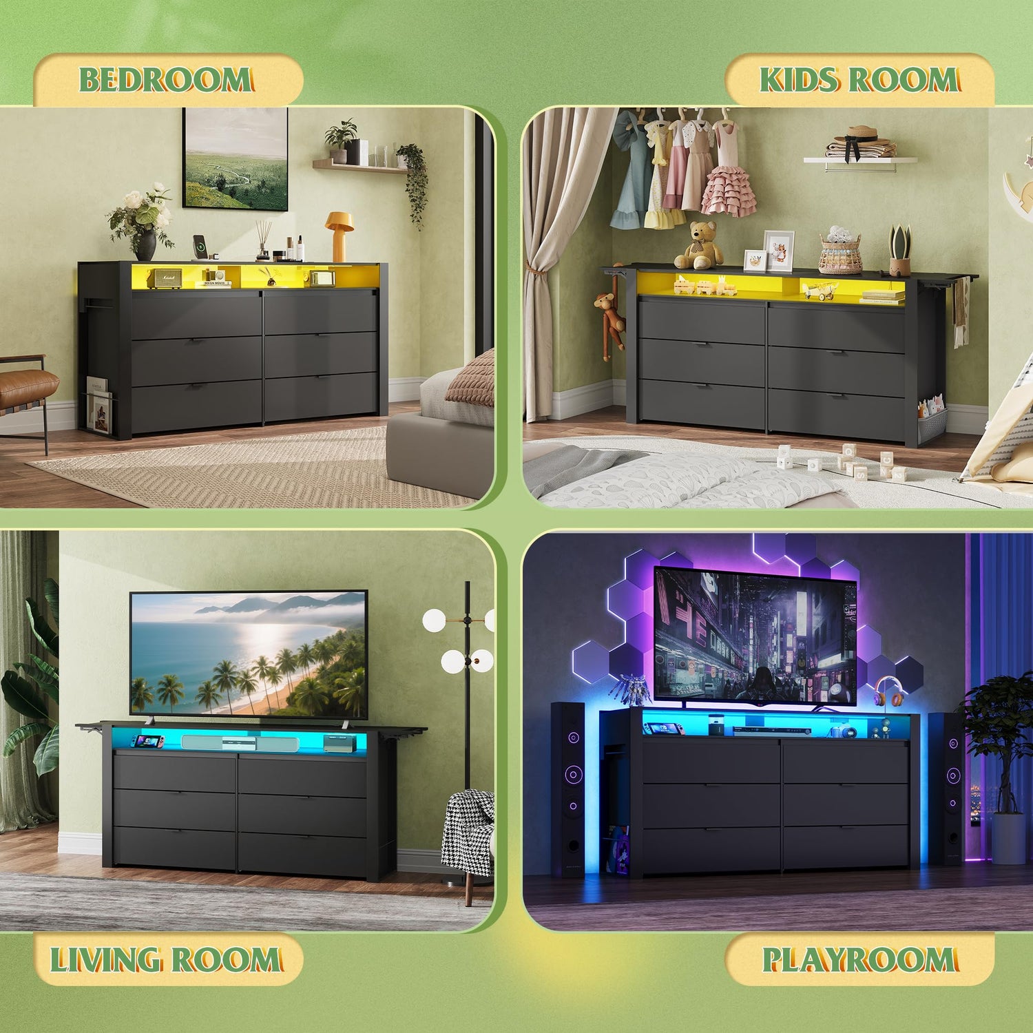 - 【🏠Multifunctional LED Dresser】60000 color rhythm, define your space mood with one click, easily adjust the light intensity and speed level via remote control or APP. It flexibly adapts to various scenes such as bedroom, living room, esports room, and the lighting can be synchronized with music to provide a personalized atmosphere for movie nights, games, and family gatherings!