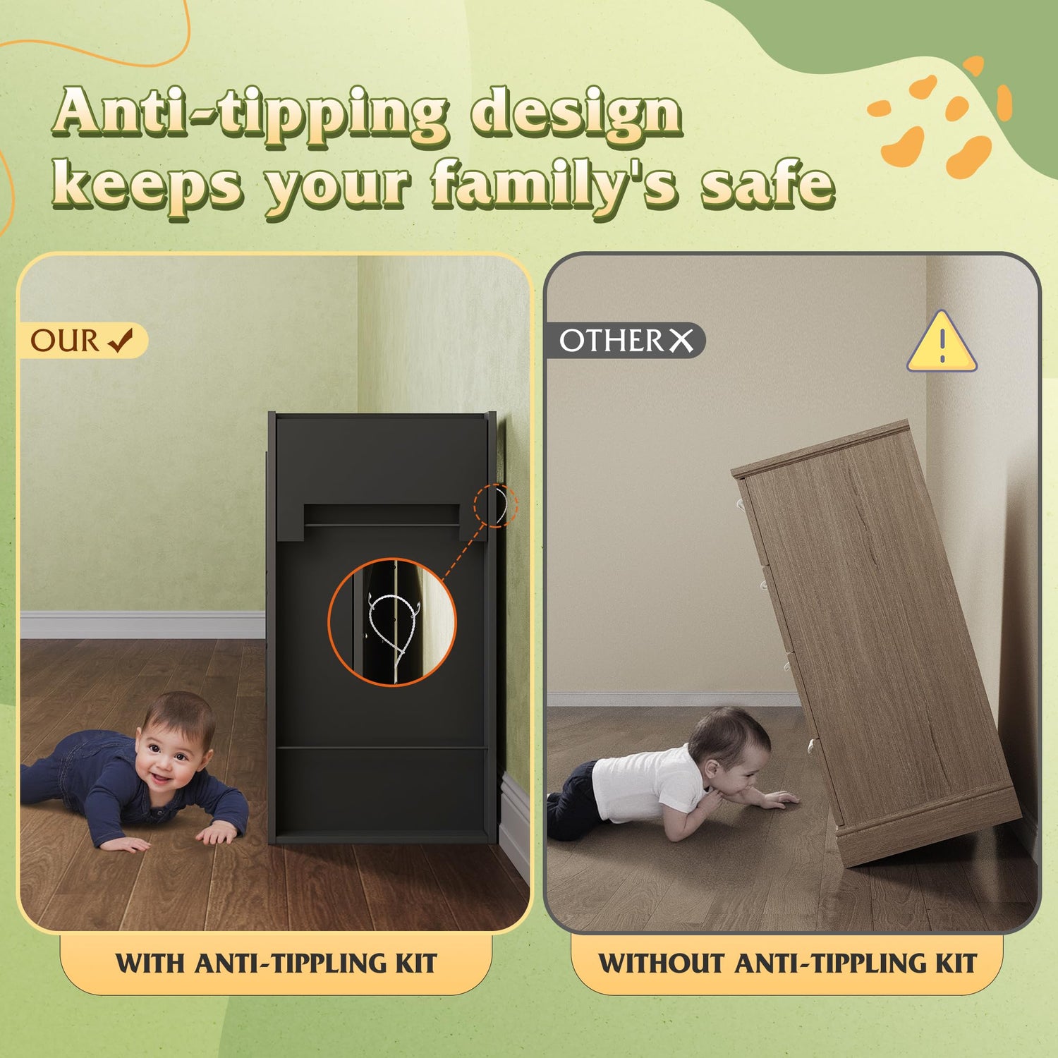 - 【✨ Stable Structure Safety Assured】This bedroom dresser is designed with thick columns on both sides and a reinforced base at the bottom. The entire Storage Dresser bearing up to 228LBS can still remain stable without tipping. Additional anti-tilt device can easily fix the cabinet to the wall, ensuring the safety of you, your family and pets, and enjoying a convenient life!