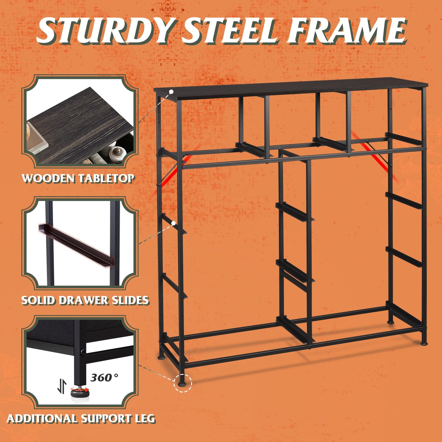 - Sturdy and Durable: Strong steel frame and water-resistant wood top offer stable support and ensure years of use; 4 adjustable plastic feet can protect your floor from scratches and are also designed for uneven ground.