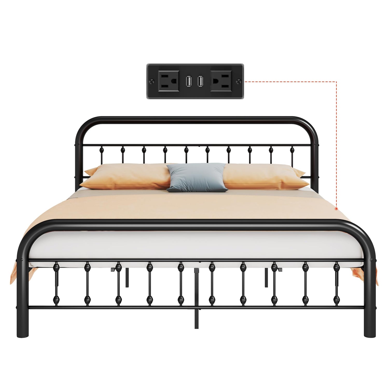 - 【🏠High Headboard】:Compared with other metal beds, this king bed frame with headboard has a higher headboard,designed taller than most standard metal bed frame, it offers exceptional back support for better protecting your head and providing you a comfortable sitting palce.