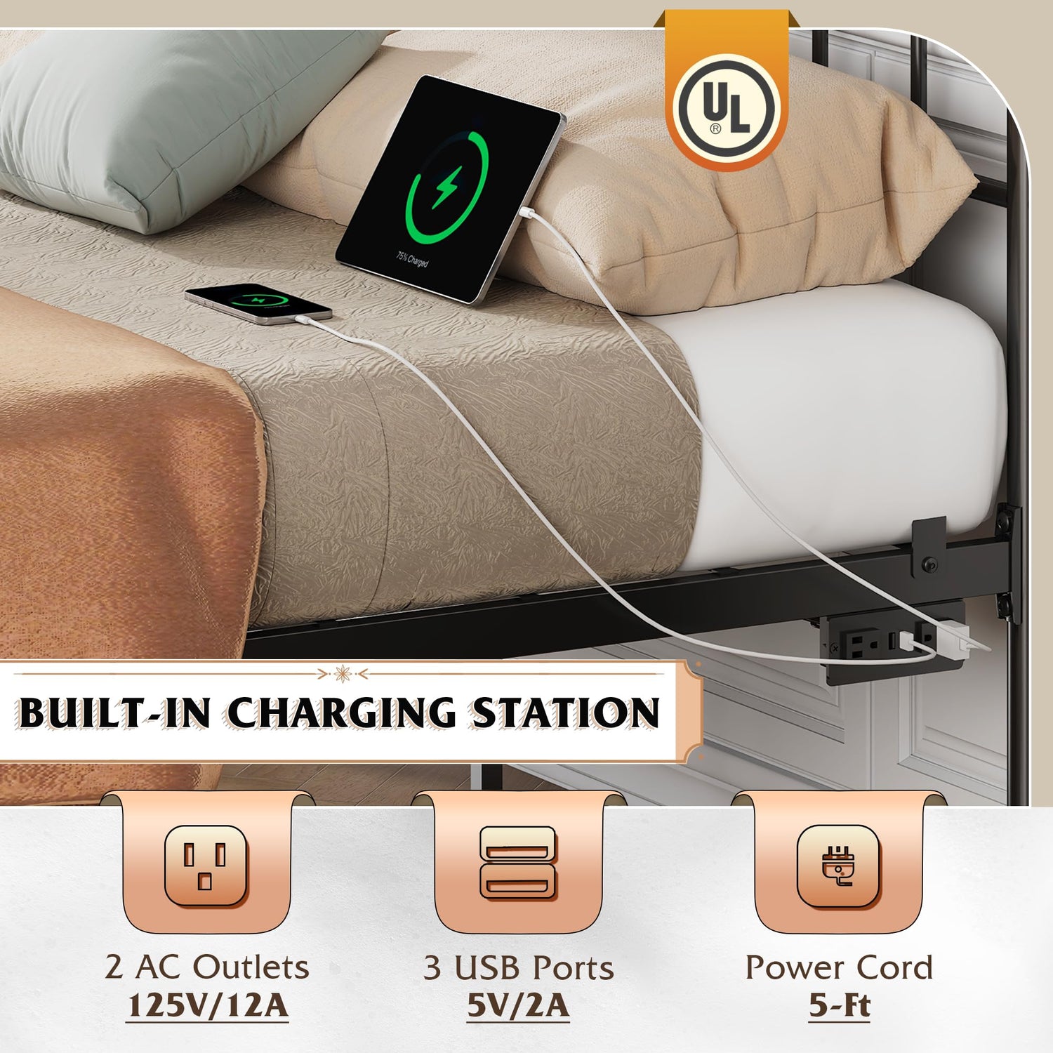 - 【✨Convenient Charging Station】:Say goodbye to low battery anxiety! The king size bed is equipped with 2 AC sockets +2 USB ports, 1.5m flexible cable length, Mobile phones, tablets, game consoles can be done, through UL/ETL certification, electricity safety!