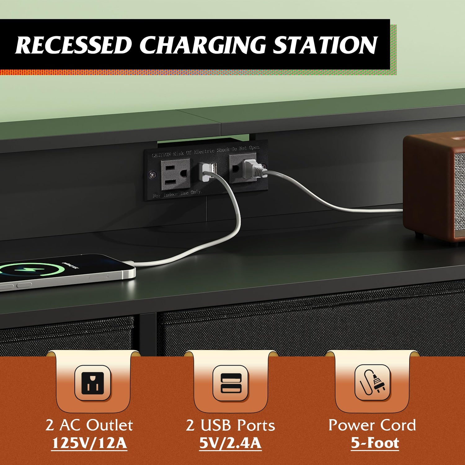 - 【✨Modern Customizable LED Light】The Wide dresser is equipped with countless (at least 31) light modes and colors, you can freely adjust the brightness and colors for any scene. The dresser with charging station has 2 USB ports, so you can easily charge your media devices without the need for extra extension cords.