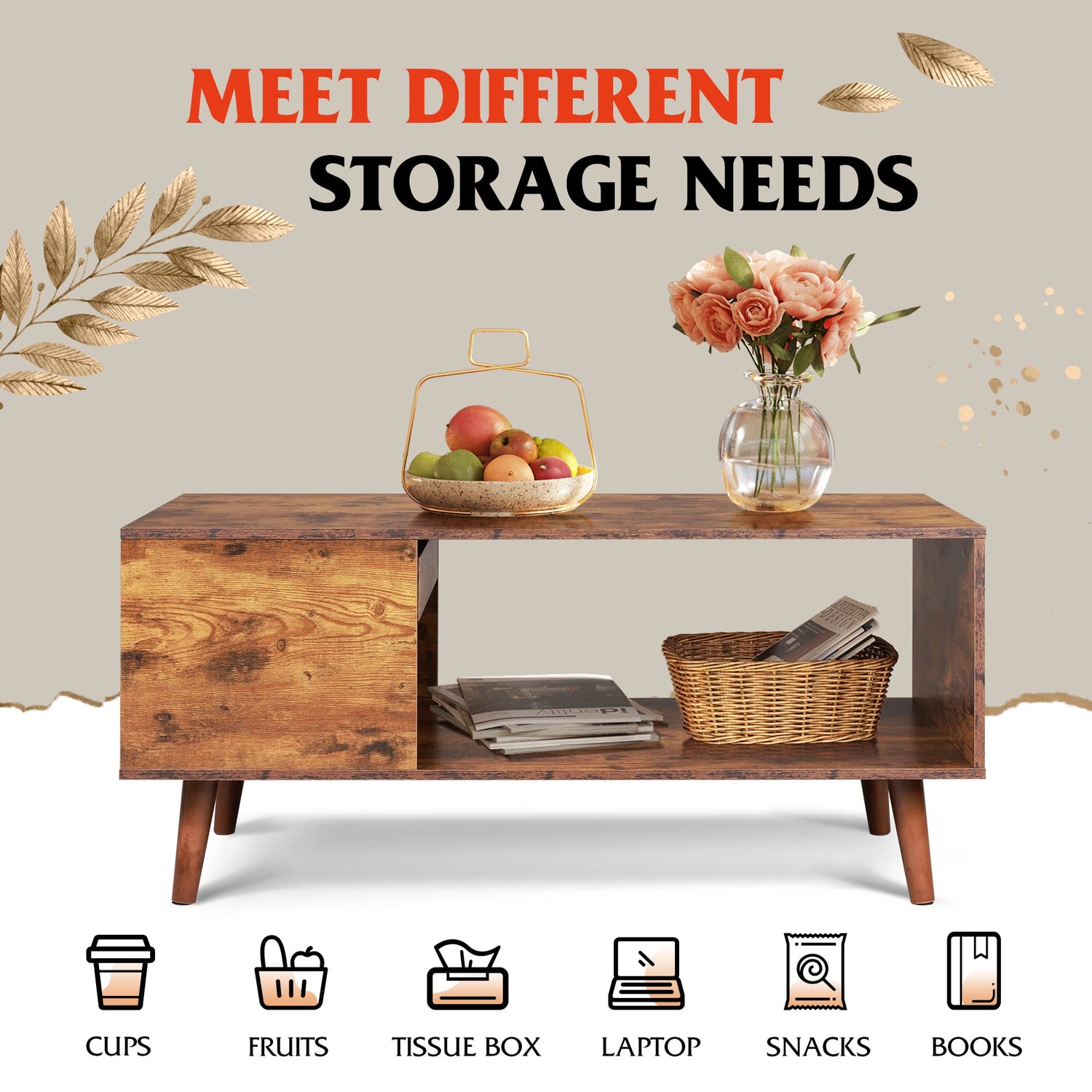 Details: WLIVE Wood Coffee Table with Storage Shelf ,Modern Mid-Century TV Stand with 1 drawer for Home Living Room, Reception, Dining Room.