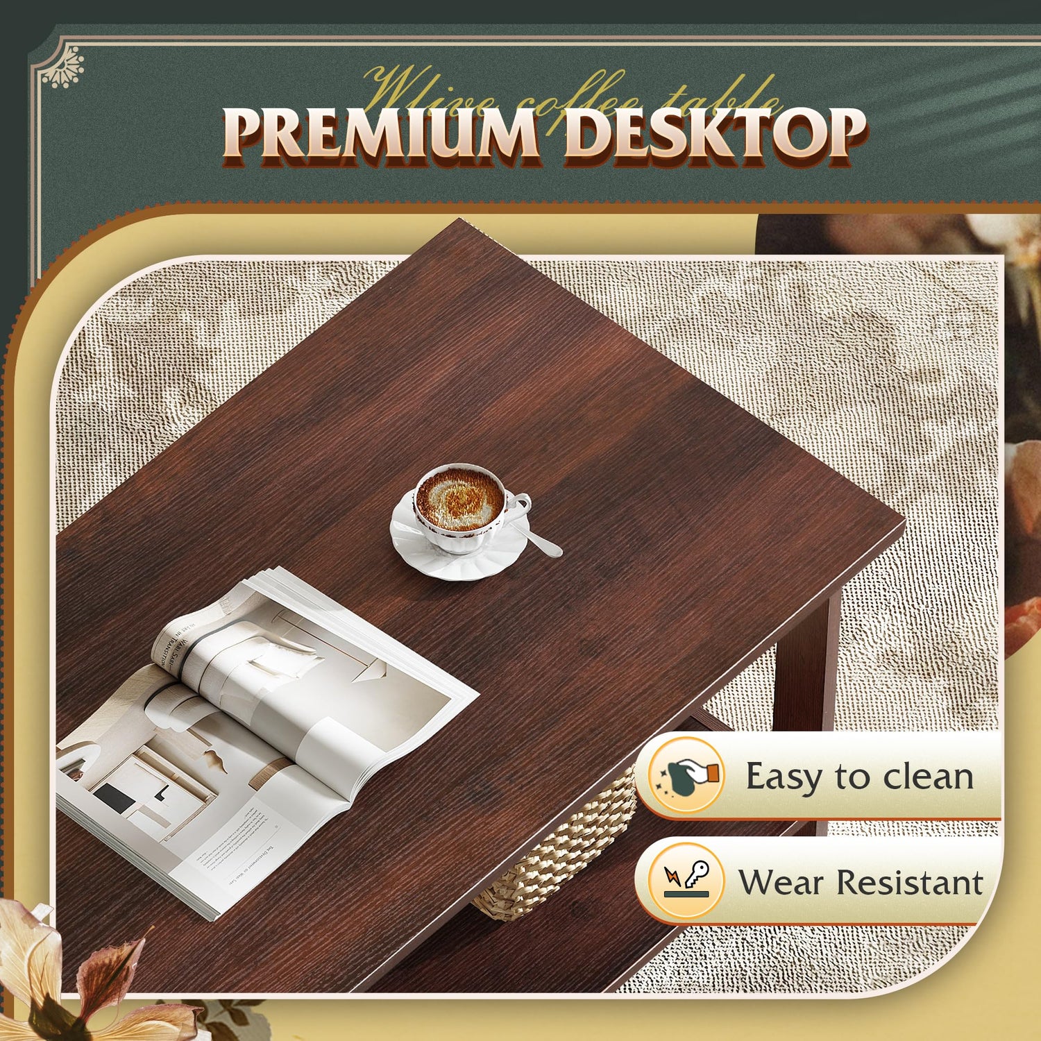 - 【Versatile for Any Room】Ideal as a center table in your living room, a stylish accent in your bedroom, or a handy surface on your balcony—this piece fits seamlessly into multiple spaces and lifestyles. Built to handle everyday use, the wood coffee table structure supports up to 130 pounds in total.