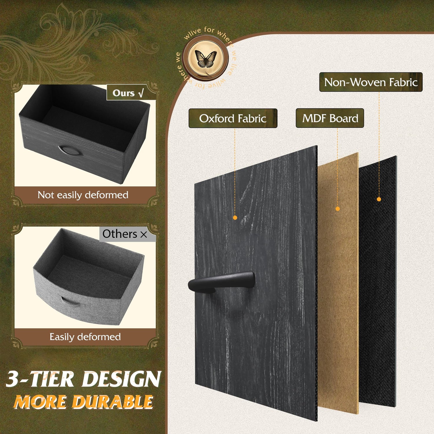 - 【✨ Durable Quality Material】The drawer consists of 3 layers of high-quality fiberboard and breathable non-woven fabric, harmless and wear-resistant, the desktop is made of P2 grade artificial wood, scratch resistant and easy to clean, the material process and safety are strictly tested by EPA&SGS, health and environmental protection, excellent quality, for you and your family to create a peaceful life!
