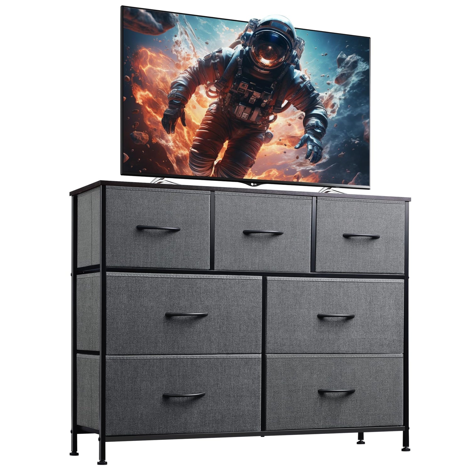 WLIVE Dresser TV Stand, Entertainment Center with Fabric Drawers, Media Console Table with Metal Frame and Wood Top for TV up to 45 inch, Chest of Drawers for Bedroom, Dark Grey