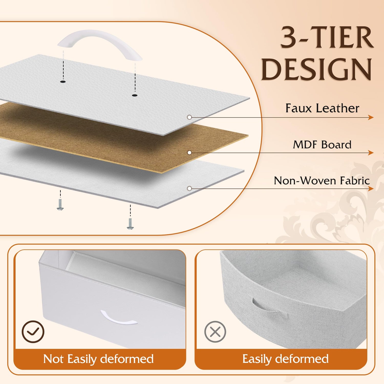 - 【Great Strong Construction】X-shaped frame on the back of the dresser improves stability; Water-resistant MDF wood top is sturdy and easy to clean; High quality fabric bins with easy pull handle are fade and stain-resistant,ensure a use period.