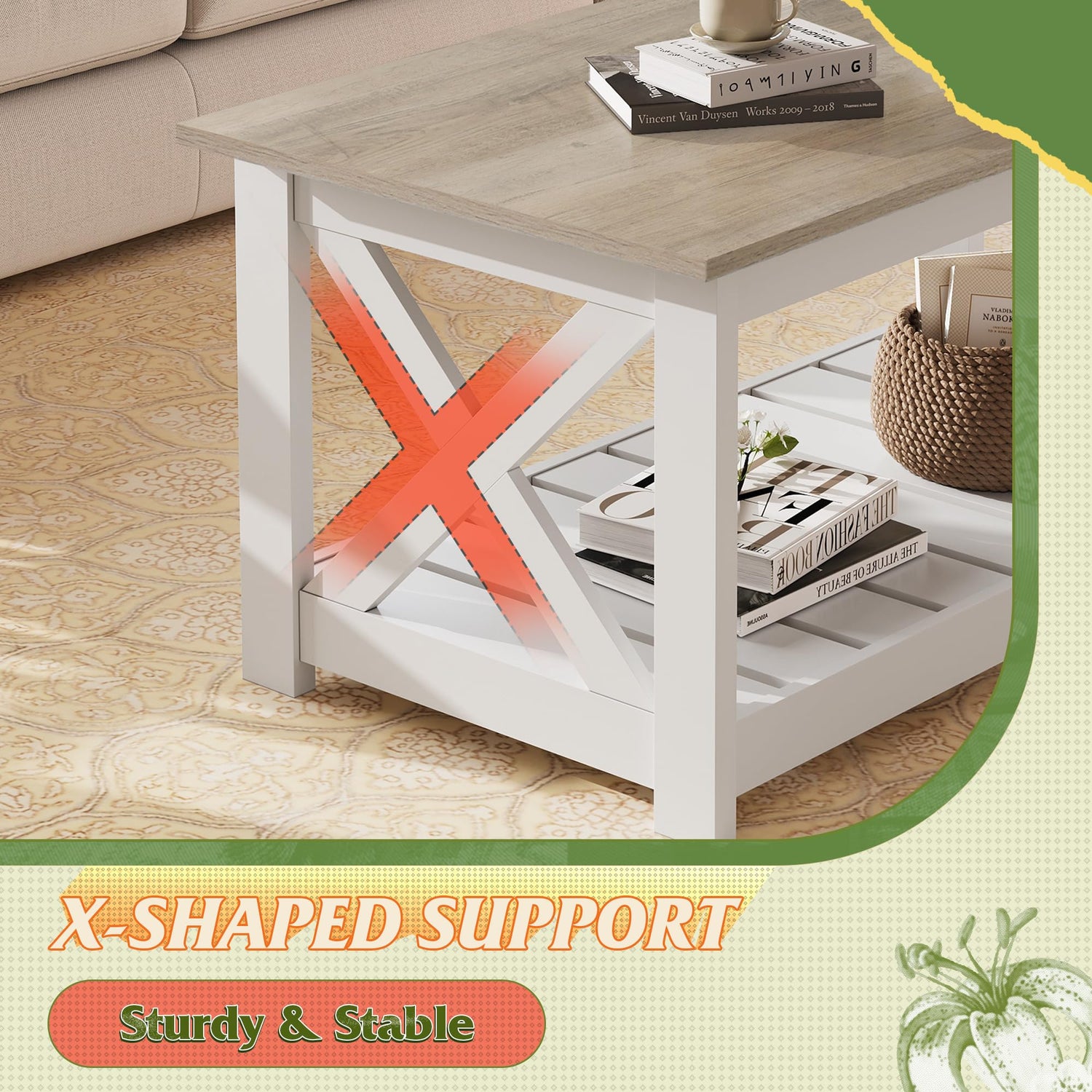 - 【Farmhouse Charm & Cozy Feel】 Blending a warm wood-grain top with a crisp white frame, this farmhouse coffee table brings rustic elegance to your living room, bedroom, or balcony