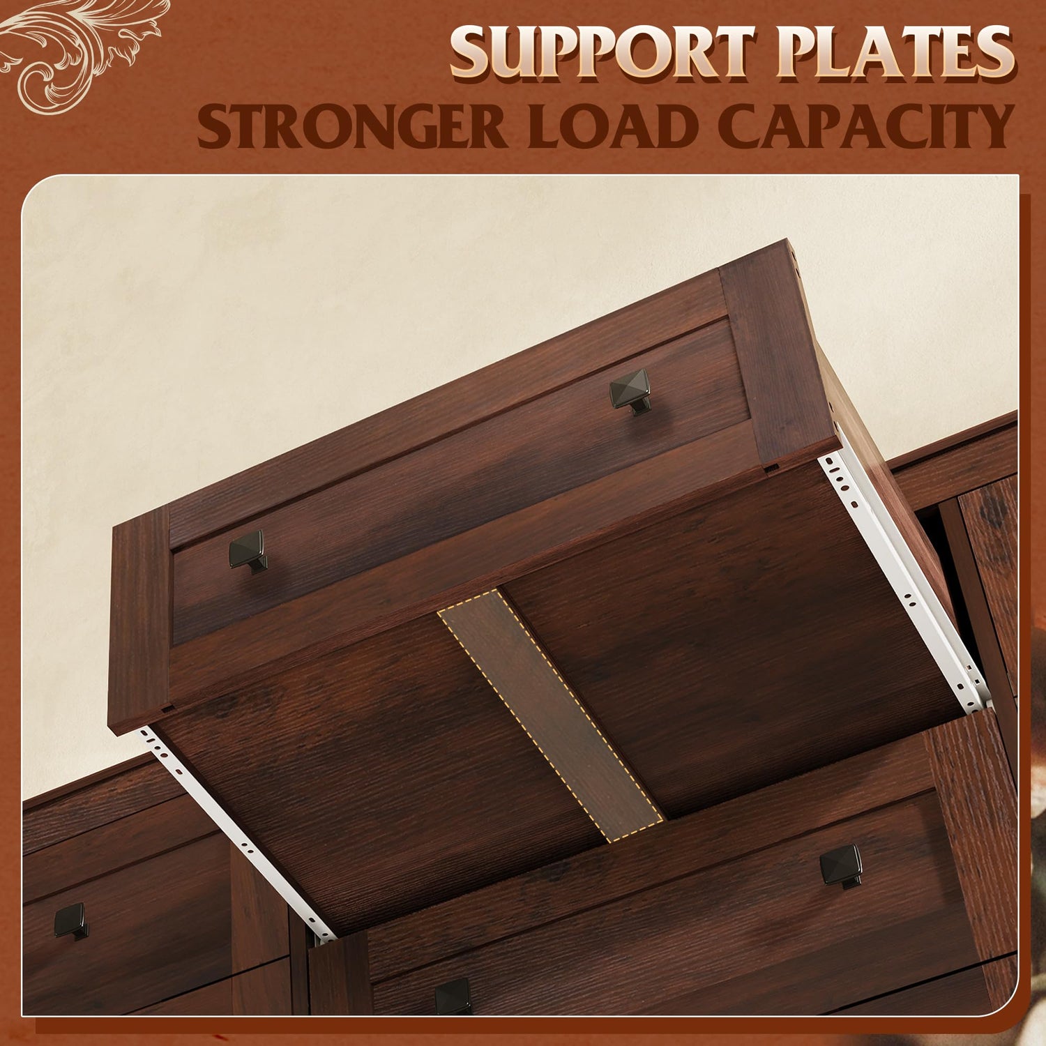 - 🎄【Farmhouse 9 Drawers Dresser】This wooden dresser farmhouse look is heightened by the rustic color finish coupled with the side barn sign, Dark square handle adds a rustic charm, Can be used for bedroom clothing organizer, entryway table, decorative storage for living room.