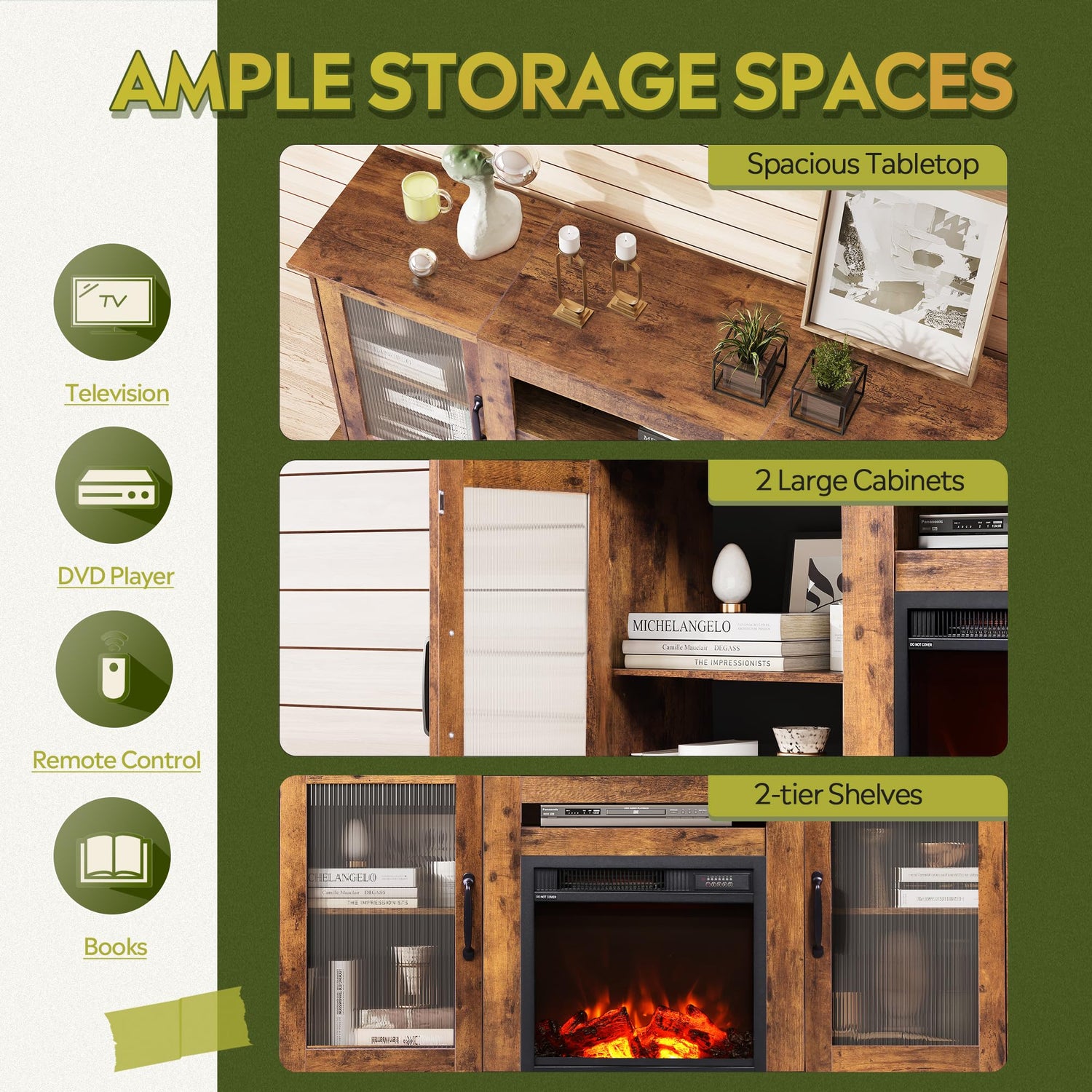- 【Ample Storage】 The upper open space in the middle of the tv stand with fireplace enough to hold your game consoles, set-top boxes, DVD players and other items. With 3-level adjustable shelves on both sides, the large-capacity hidden storage space can meet your daily storage needs.