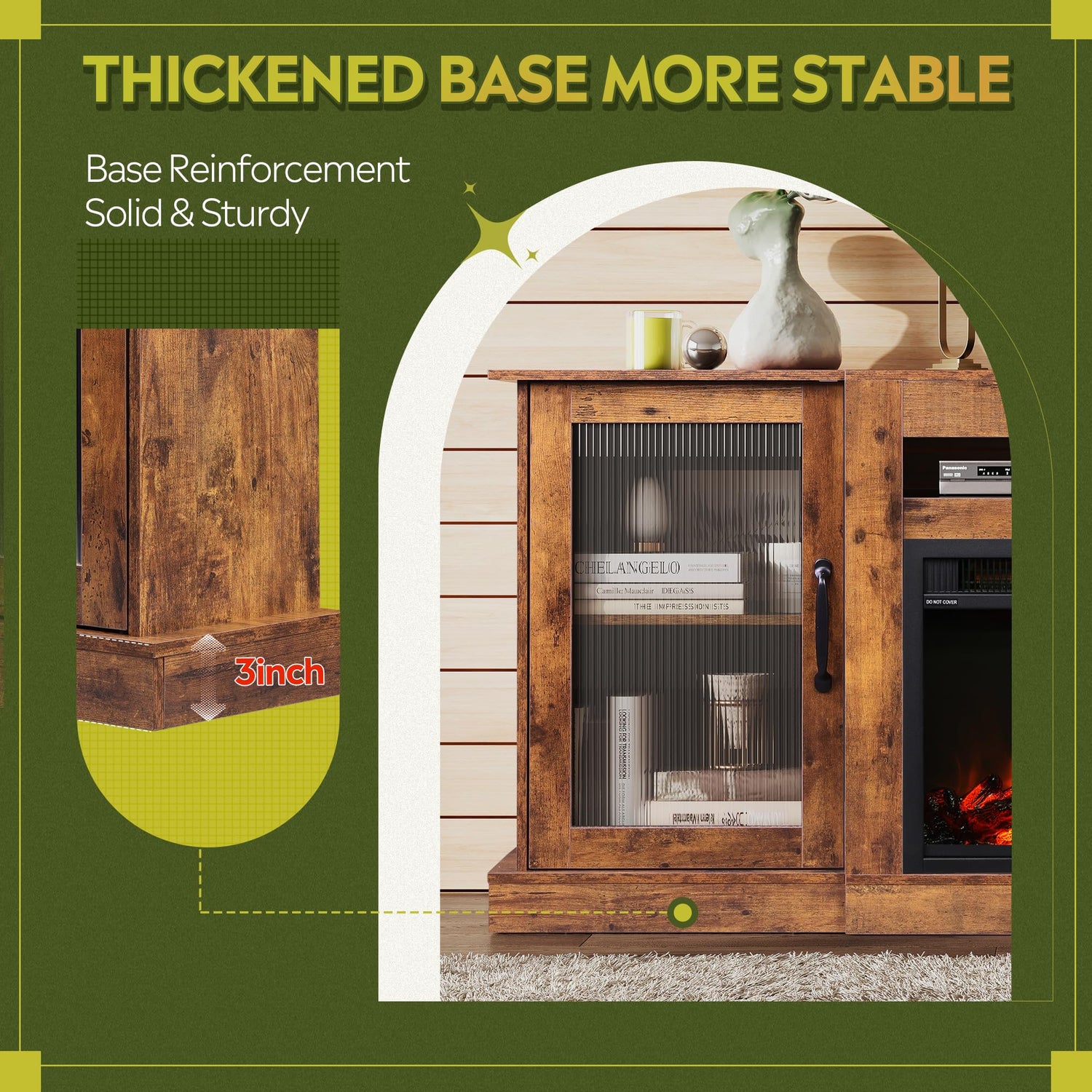 WLIVE Fireplace TV Stand for 65" TV, Entertainment Center with 18 Inch Electric Fireplace, TV Console with Open Shelves for Living Room, Rustic Brown